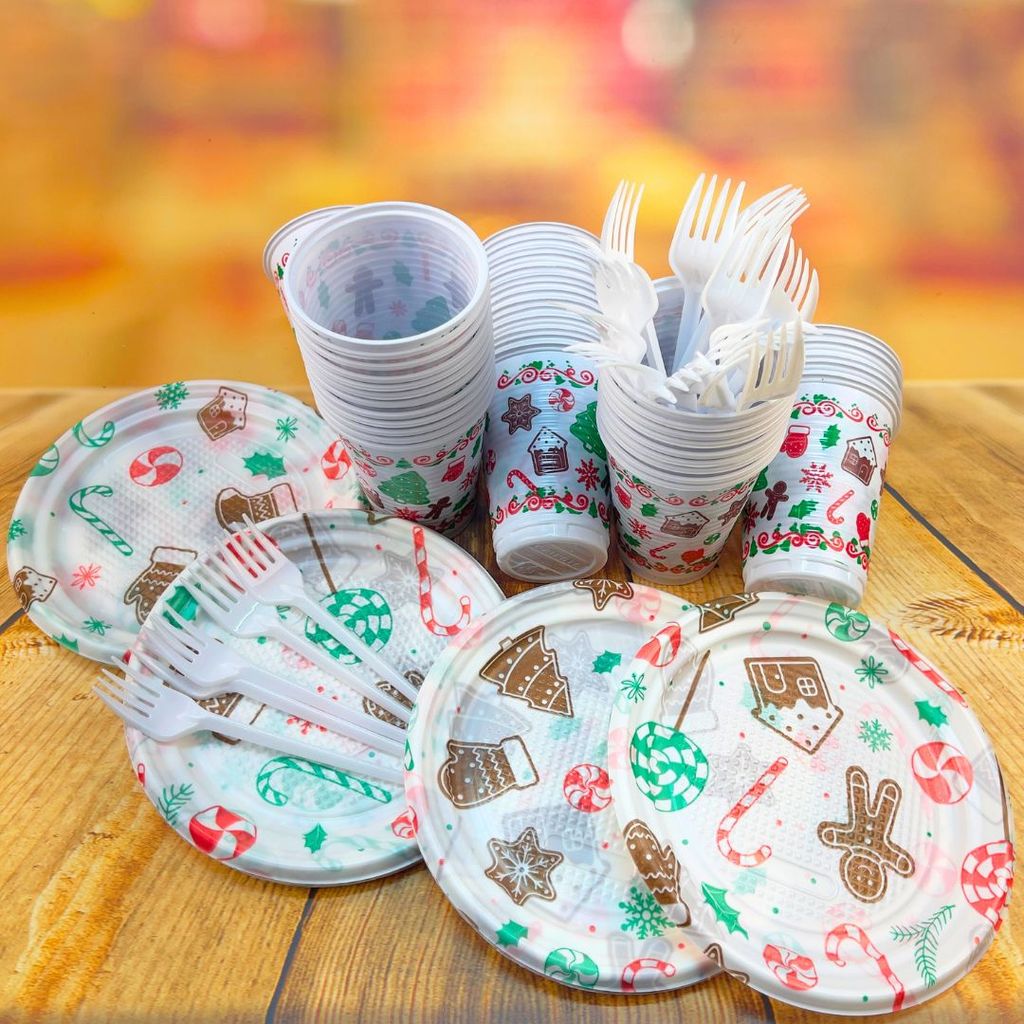 KIT FESTA NATAL 50 PESSOAS COPOS+PRATOS+GARFOS