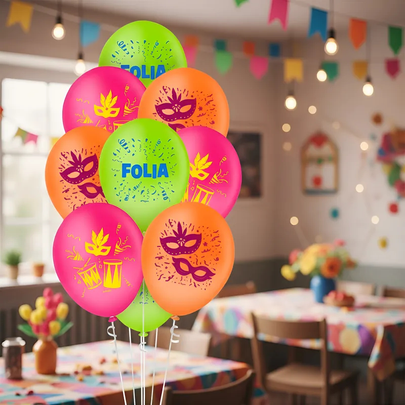 50 BALÃO CARNAVAL FOLIA REDONDO 9 pol. ( REGINA )