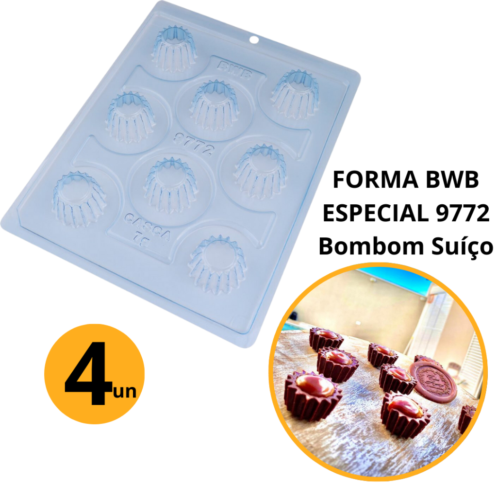 1~4 Forma BWB Com Silicone (3 partes) Cód. 9772 - Bombom Suiço 17g. Para Festas Trufas, Bombons