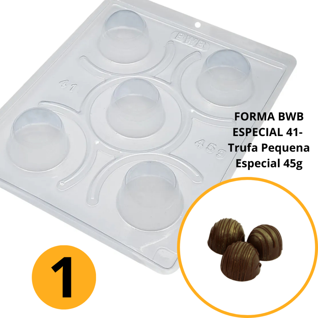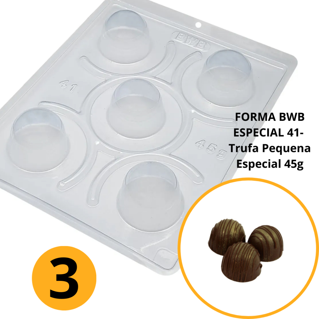 1~4 FORMA BWB COM SILICONE (3 PARTES) CÓD.:41 - PARA CHOCOLATE, TRUFA PEQUENA ESPECIAL 45g. (CHOCO)