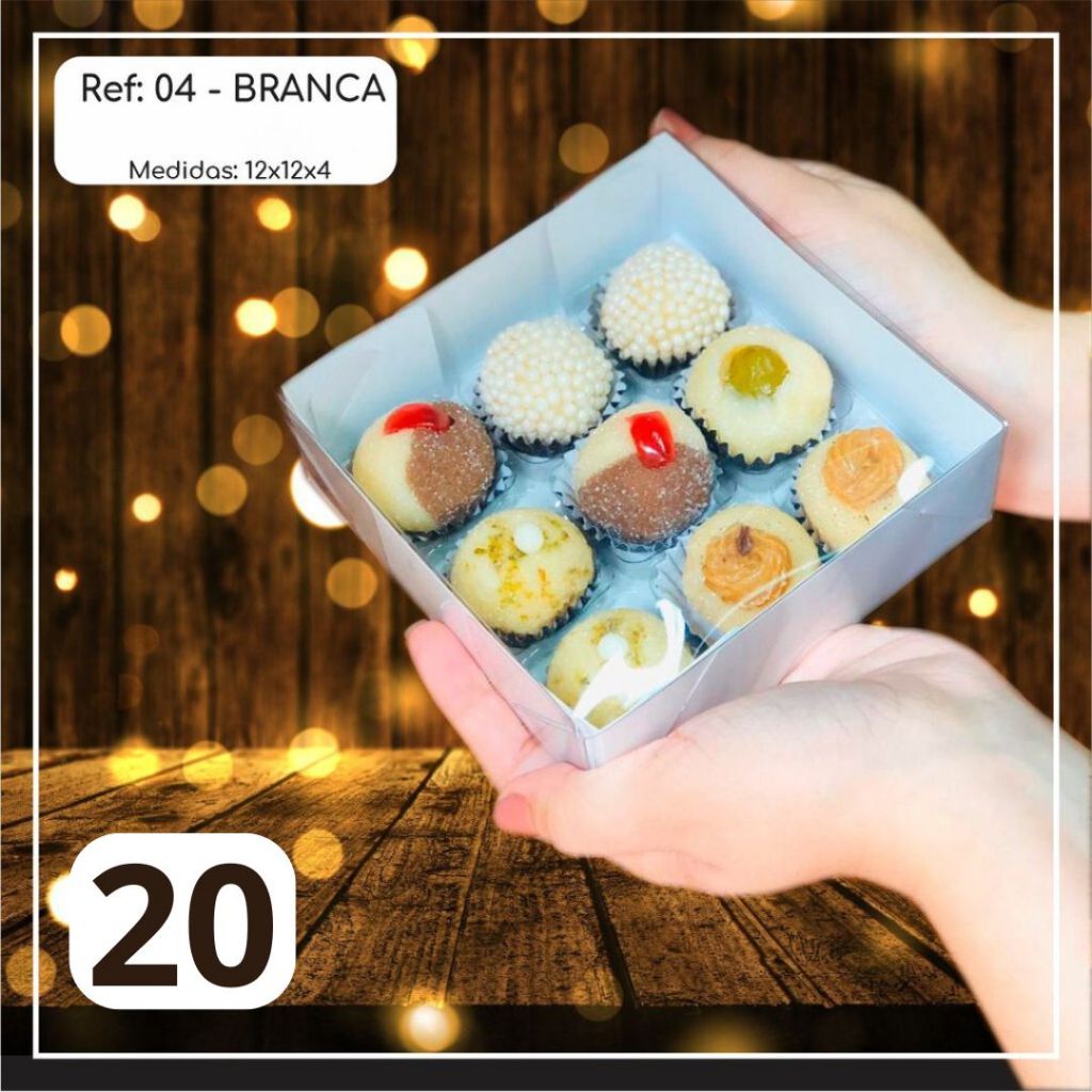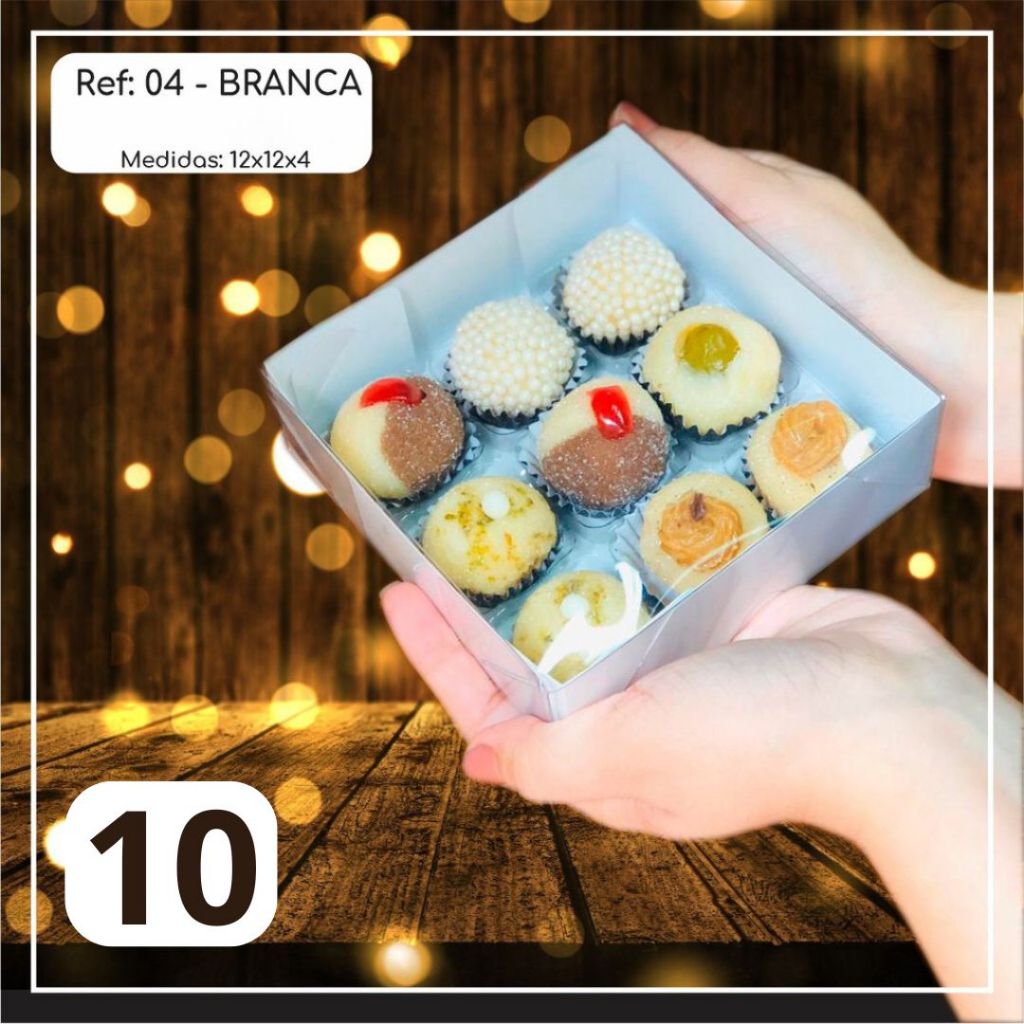 10 ~50 Caixas Embalagem 9 Doces Com Visor em Acetato BRANCA 12x12x4 - Ref. 04 ( Chocobraz )