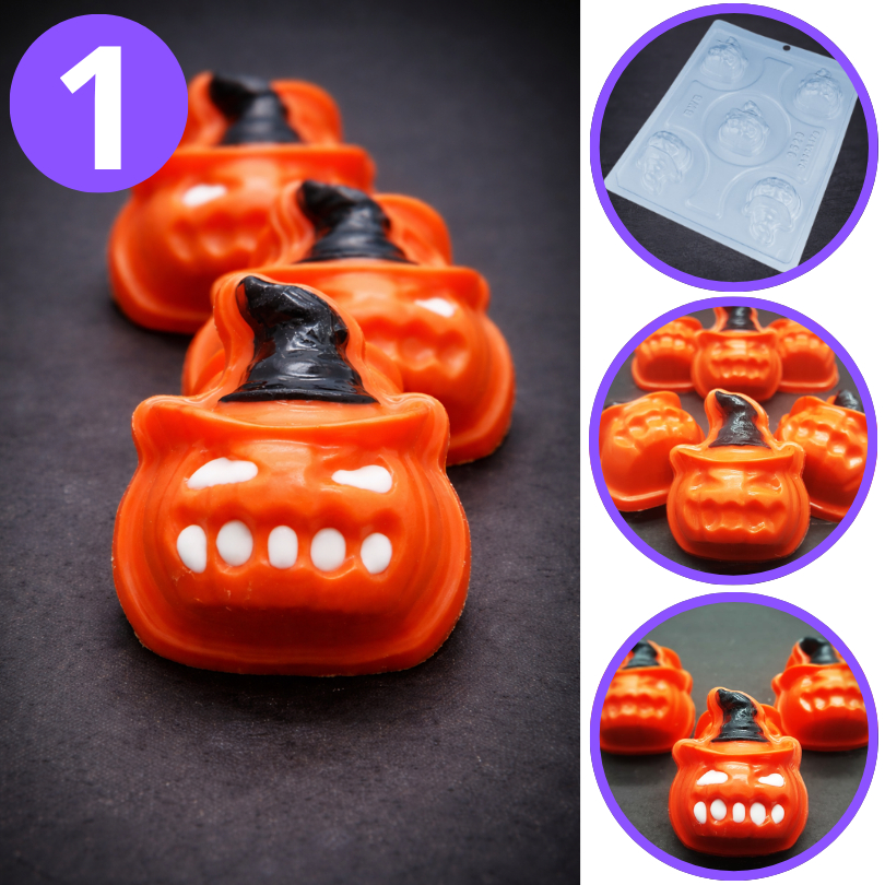 1~5 Forma BWB Com Silicone (3 partes) Para Chocolate Cód. 9529 - Abóbora com Chapéu 38g. Halloween (CHOCO)