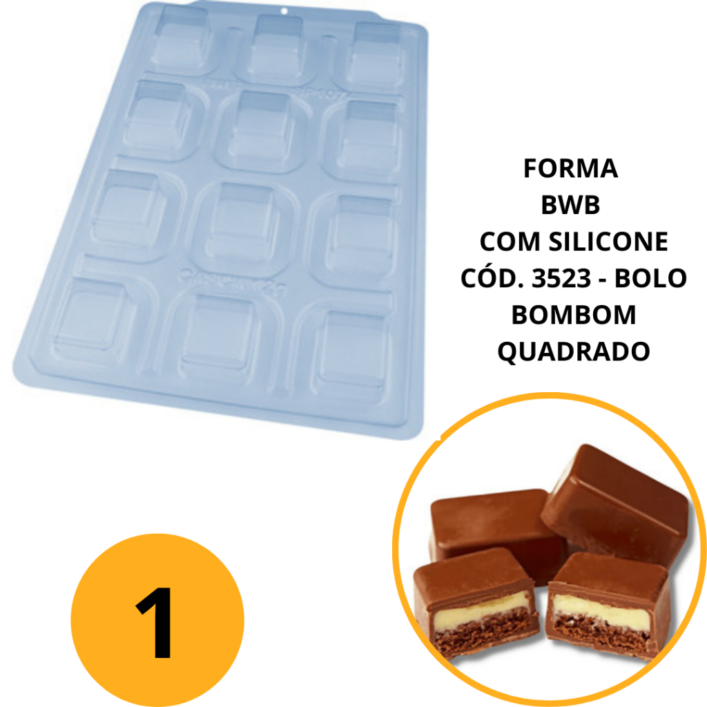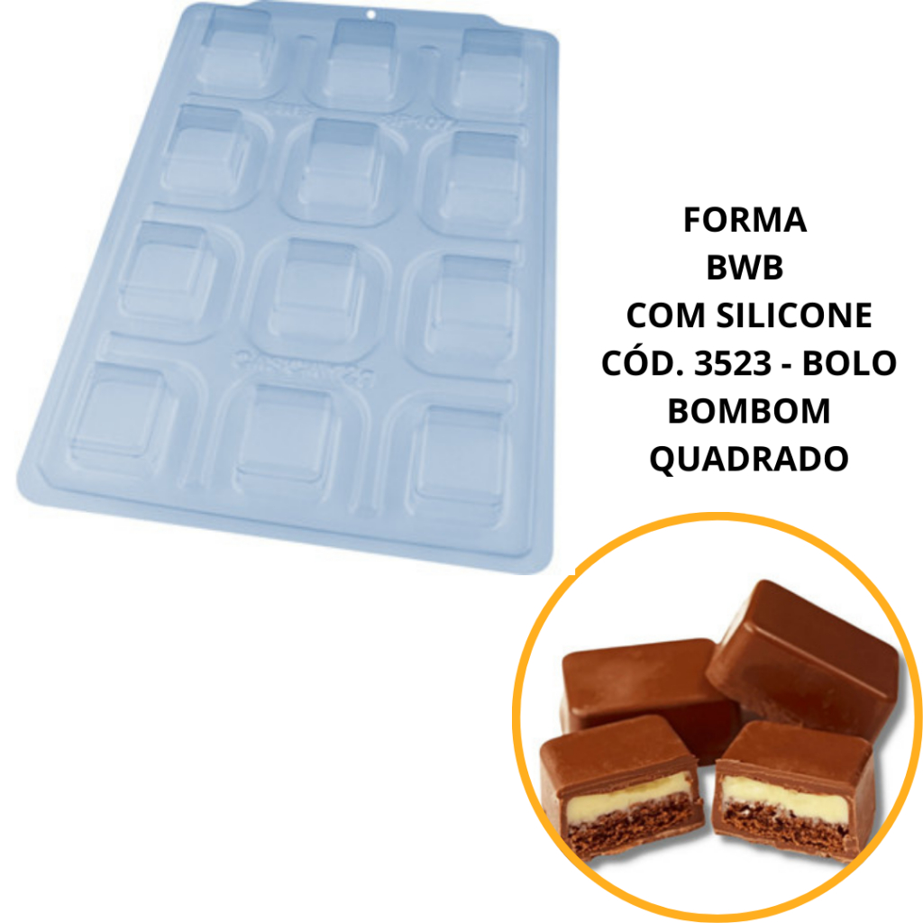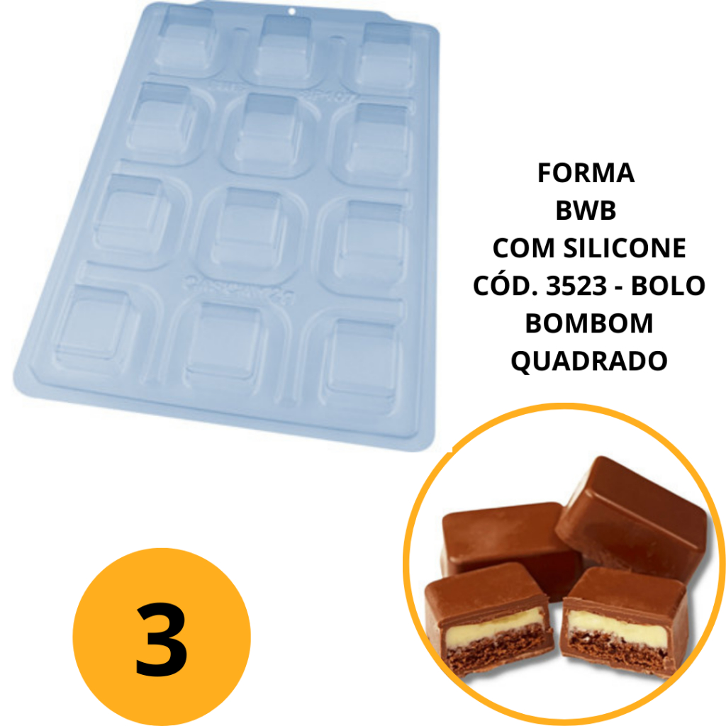 1~4 FORMA BWB COM SILICONE SEMIPROFISSIONAL, DOCES FINOS CHOCOLATES CÓD. 3523 - BOLO BOMBOM QUADRADO