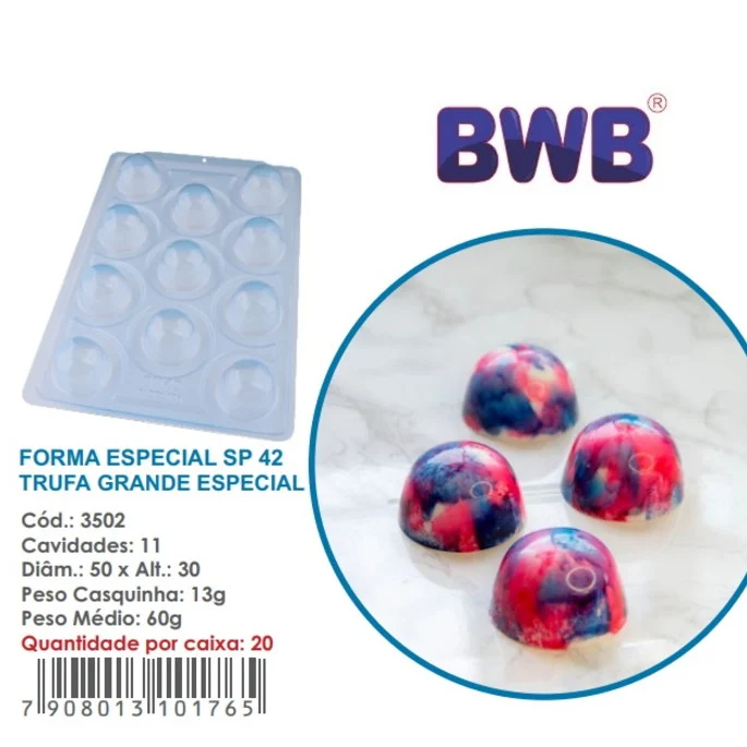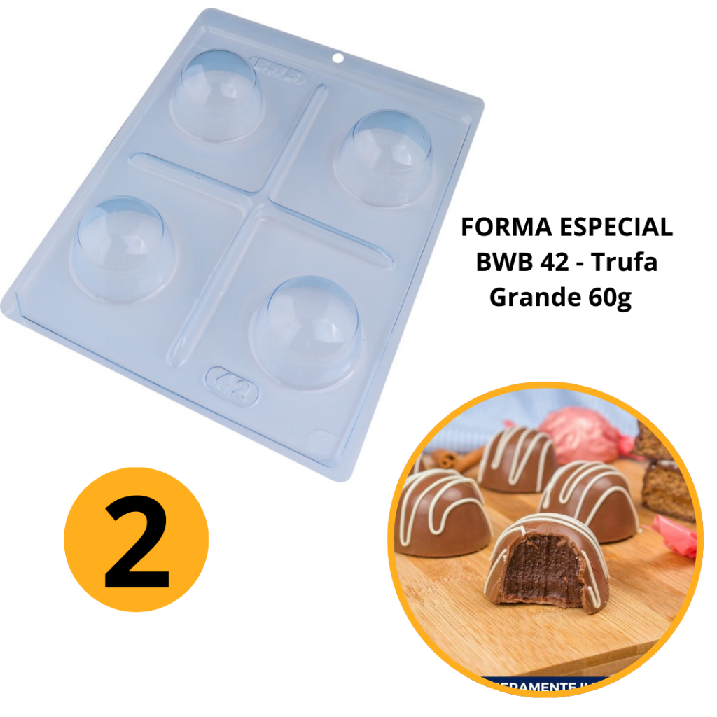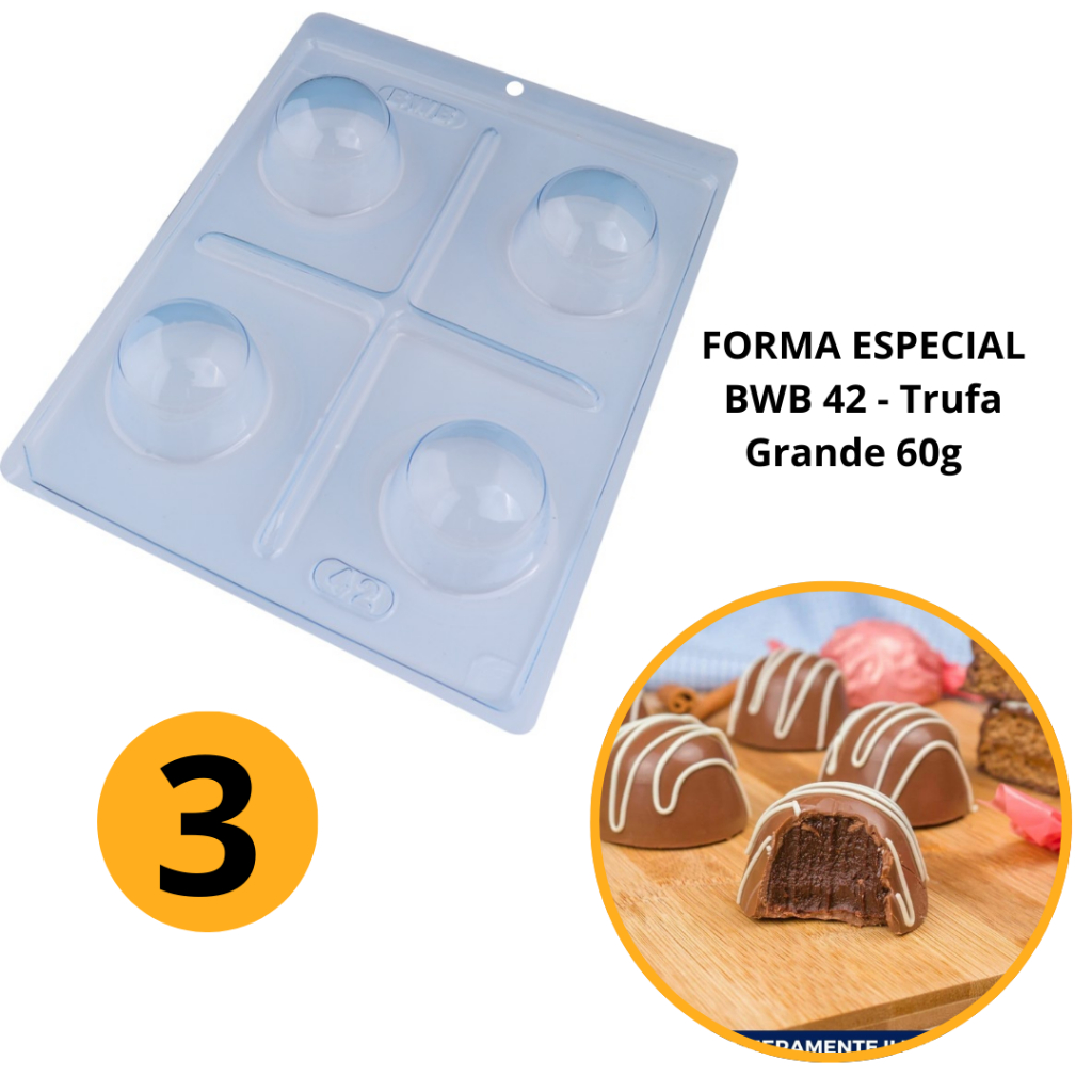 Forma BWB Com Silicone (3 partes) Para Chocolate Cód. 42- Trufa Grande 60g, Trufas, Bombons (CHOCO)