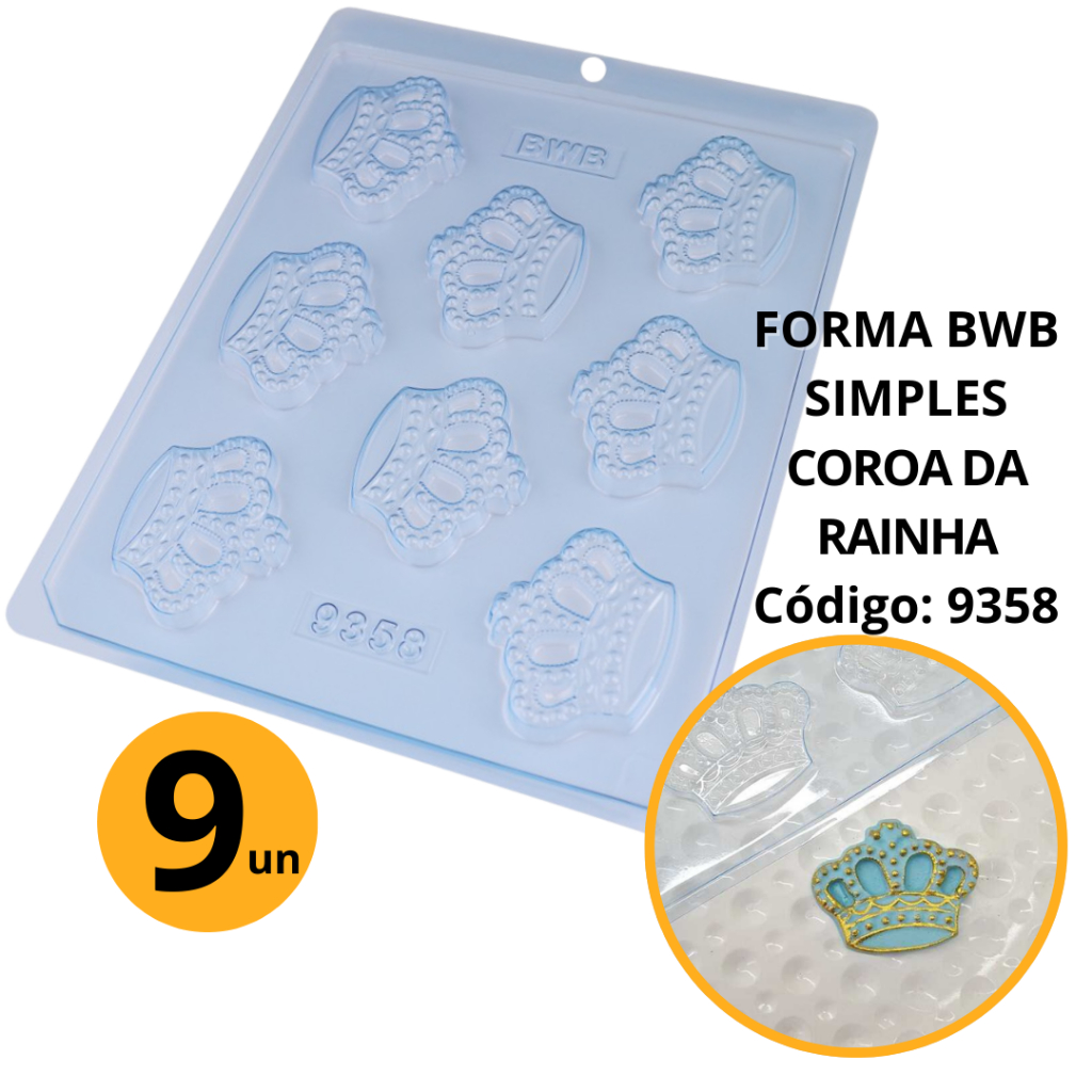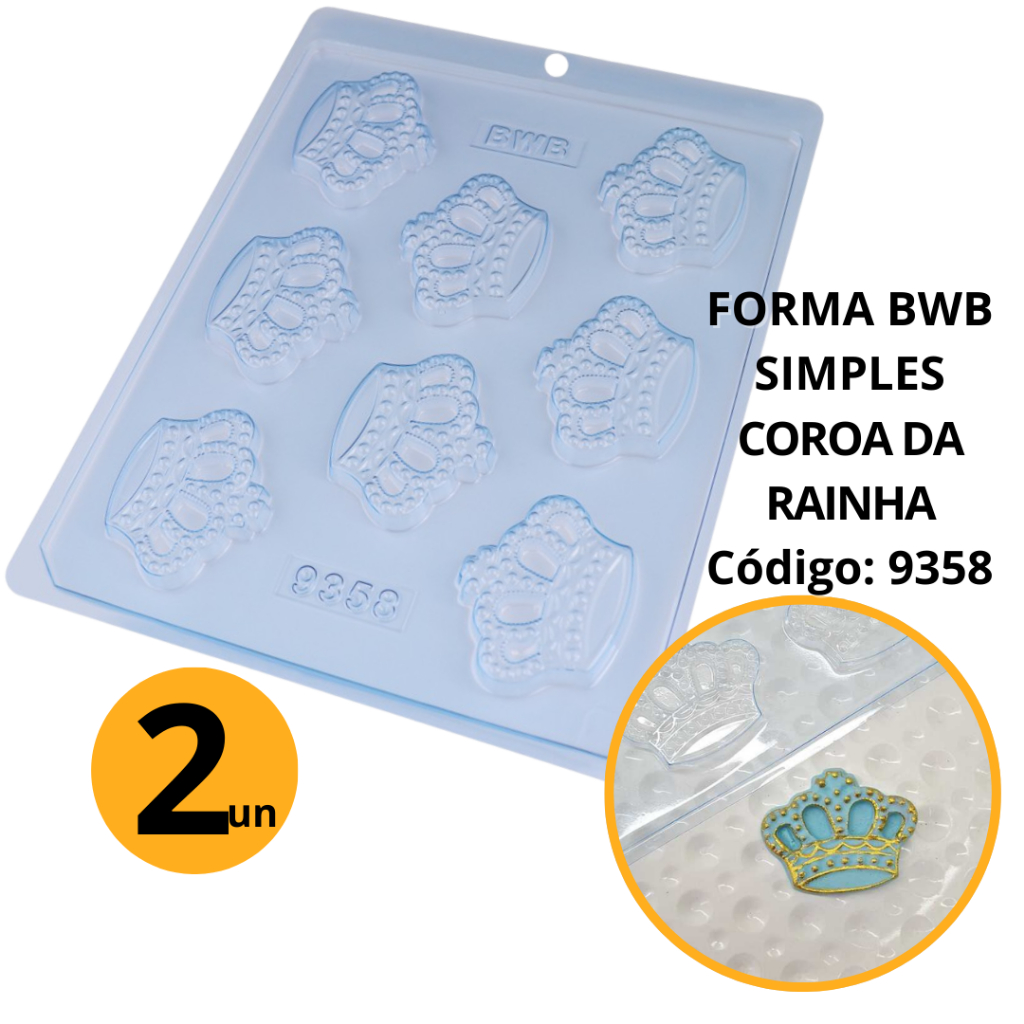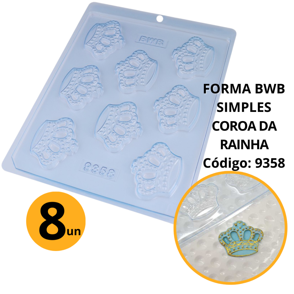 1~10 FORMA SIMPLES COROA DA RAINHA 9358 (F4) EM ACETATO BWB PARA BOMBOM E DOCES DE CHOCOLATE E CONFEITARIA PÁSCOA