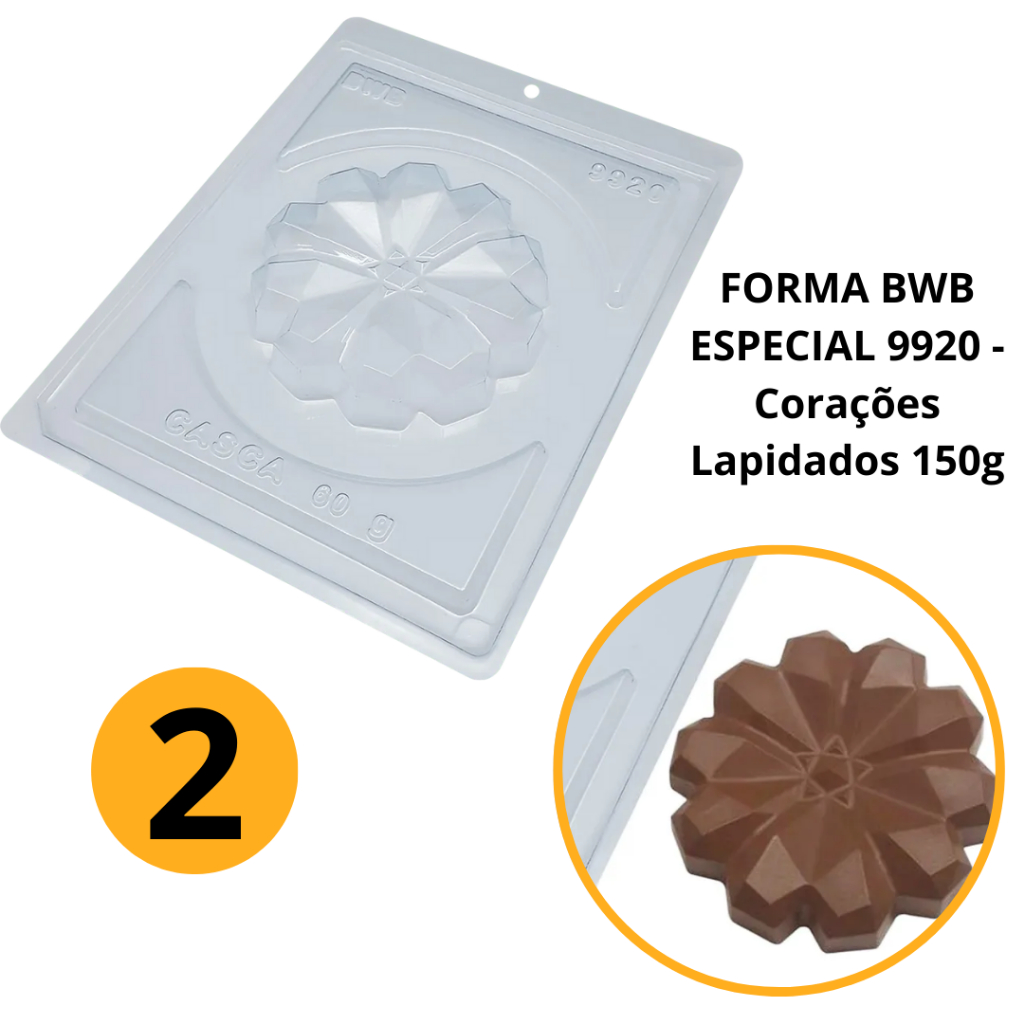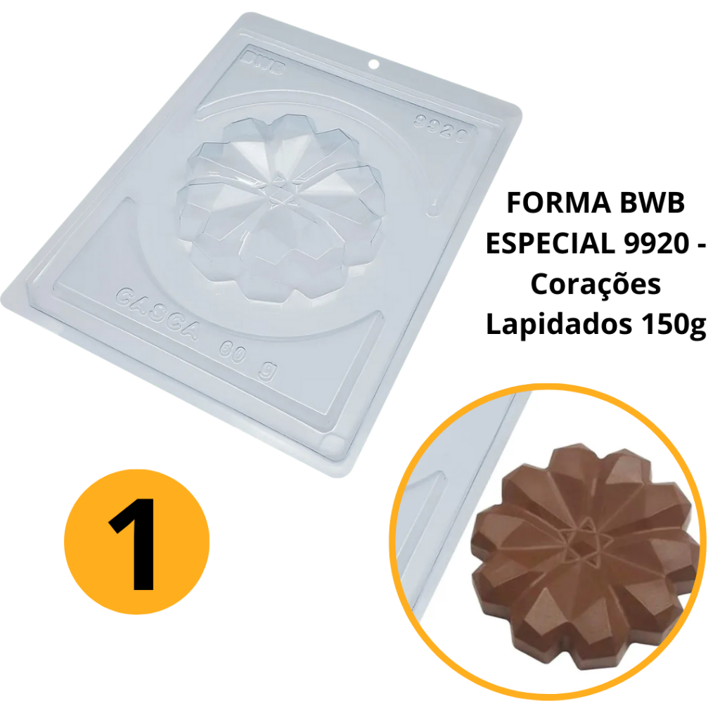 1~4 Forma bwb com silicone (3 partes) cod 9920 - Corações Lapidados 150 gramas (CHOCO)