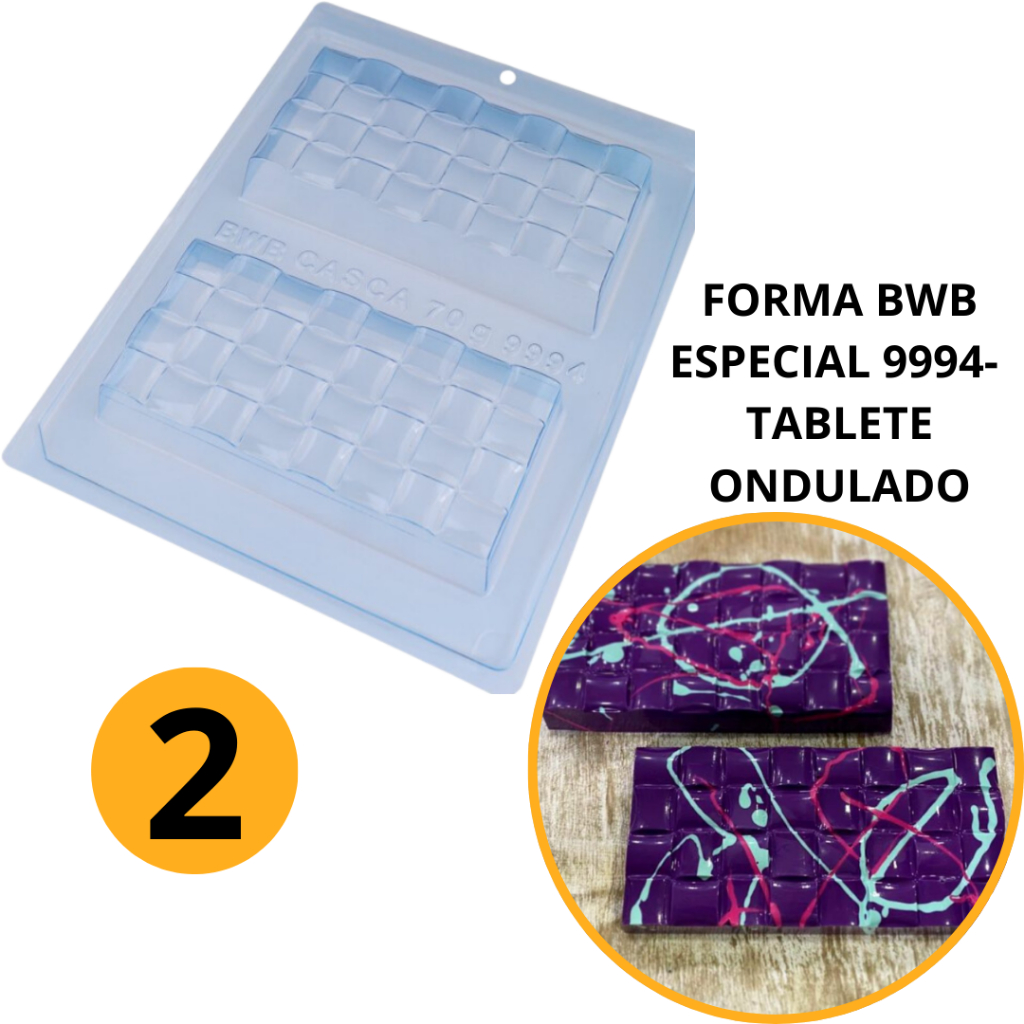 1~4 FORMAS BWB COM SILICONE (3 PARTES) CÓD.:9994- TABLETE ONDULADO 250g. (CHOCO)