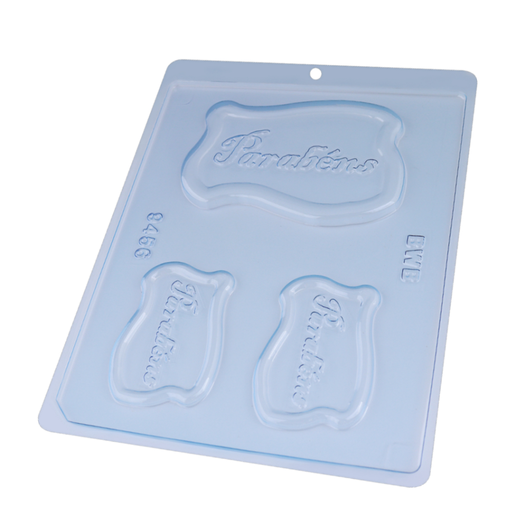 1~10 FORMA SIMPLES PLACA PARABÉNS 9456 (E2) EM ACETATO BWB PARA BOMBOM E DOCES.