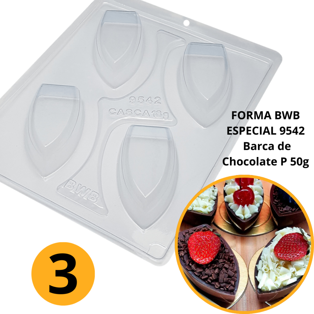 1~4 forma silicone bwb p/chocolate (3partes) cod 9542 - Barca de Chocolate P 50g (CHOCO)