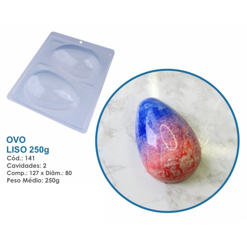 Forma Simples Ovo Liso 250g 141 - 10587 (L1) em Acetato BWB Para Bombom e Doces de Chocolate.