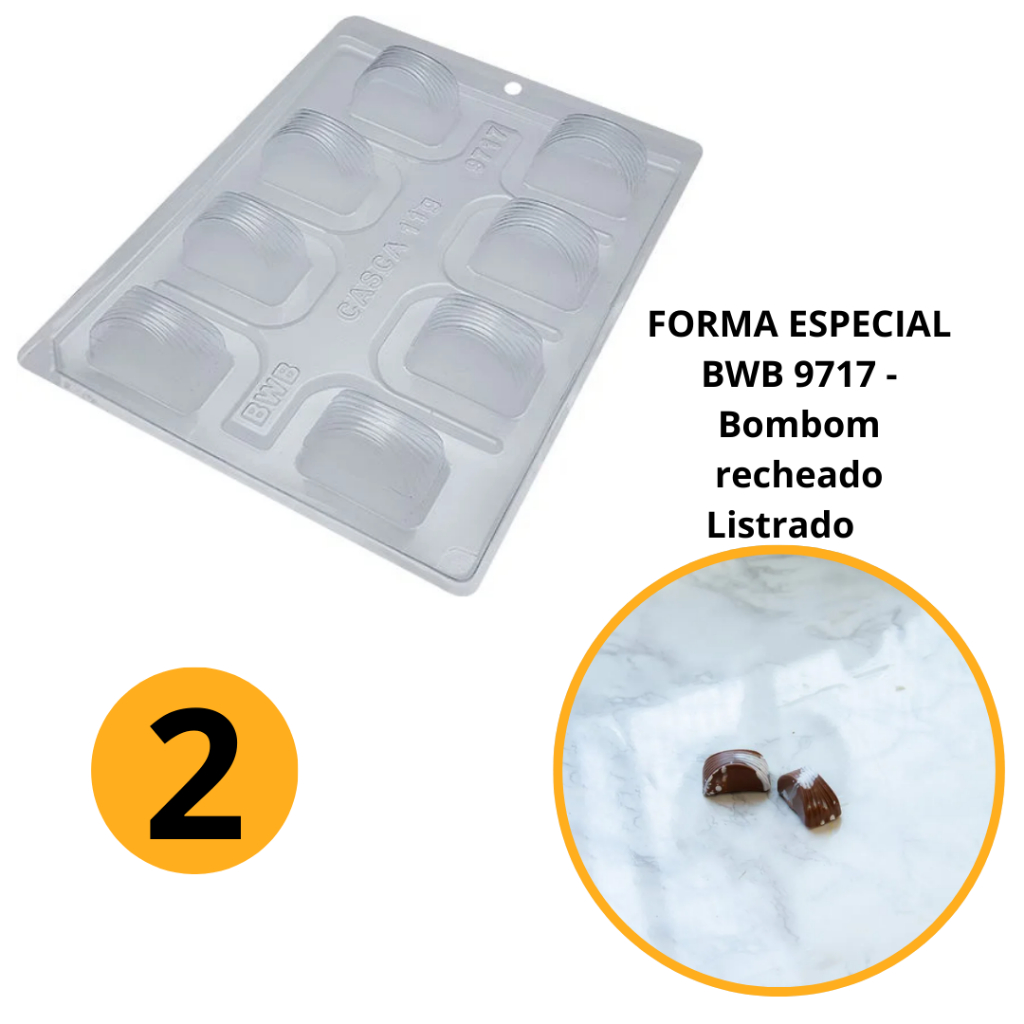 1~4 Forma BWB Com Silicone (3 partes) Para Chocolate Cód. 9717 - Bombom Recheado Listrado.