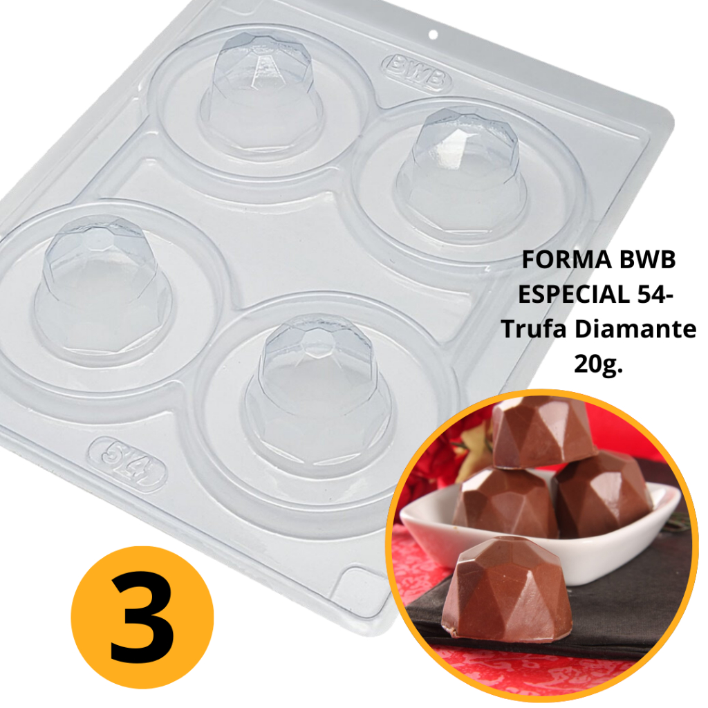 1~4 Forma BWB Com Silicone (3 partes)-Cód. 54 - Trufa Diamante 20g. Para Festas Trufas e Bombons