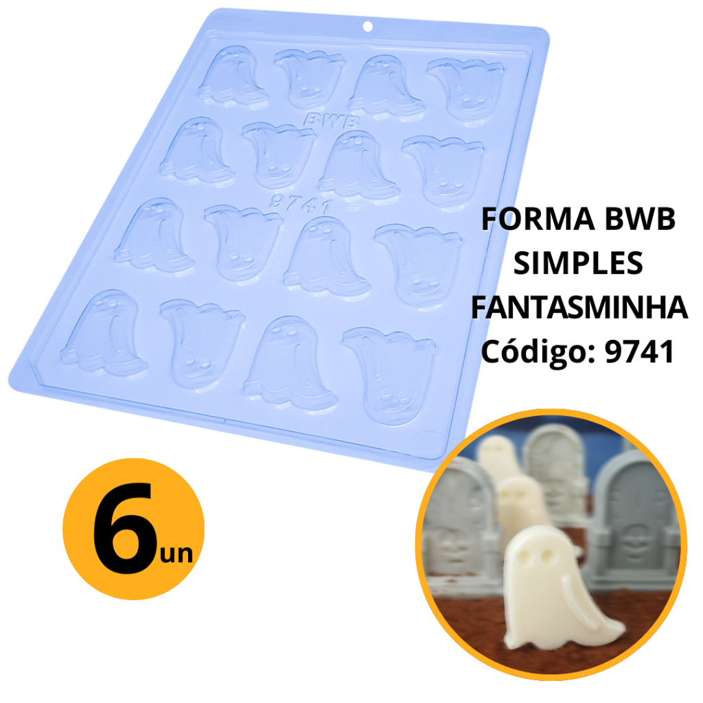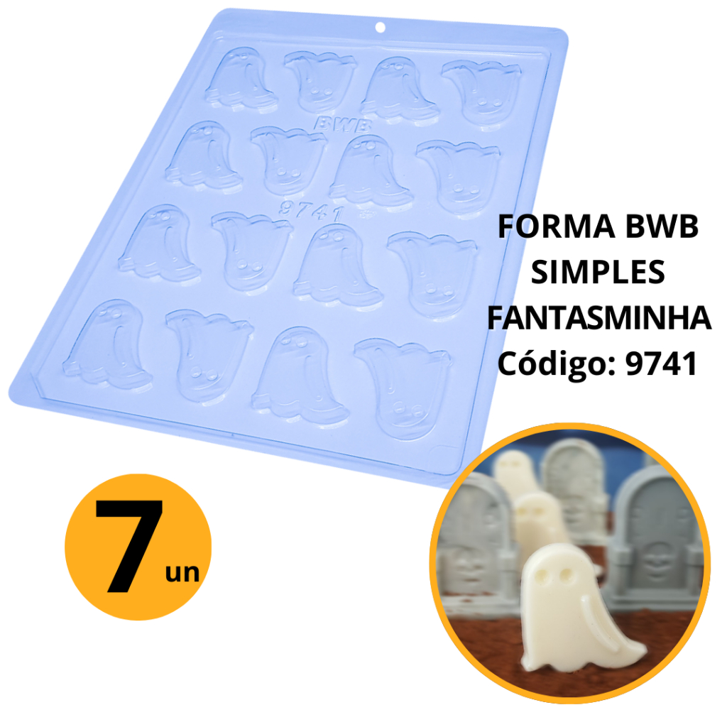 1~10 FORMA SIMPLES FANTASMINHA CÓD.:9741 - (i9) EM ACETATO BWB PARA BOMBOM, DOCES DE CHOCOLATE E CONFEITARIA.