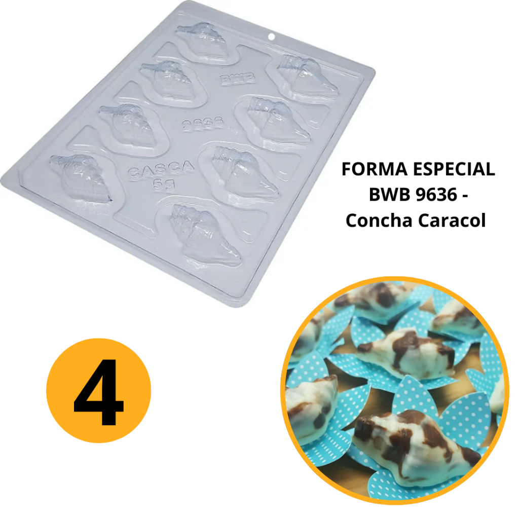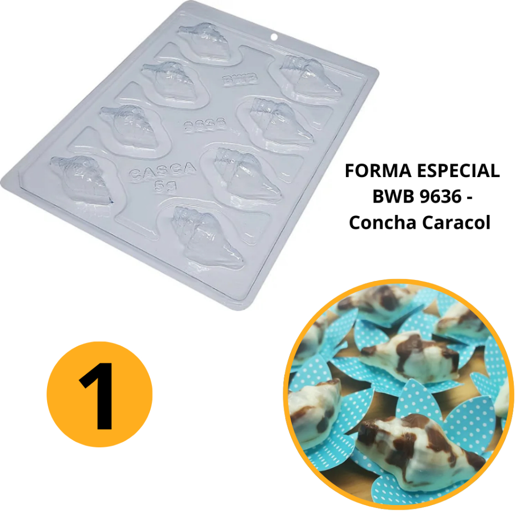 1~4 Forma bwb com silicone (3 partes) cod 9636 - Concha Caracol 13 g (CHOCO)