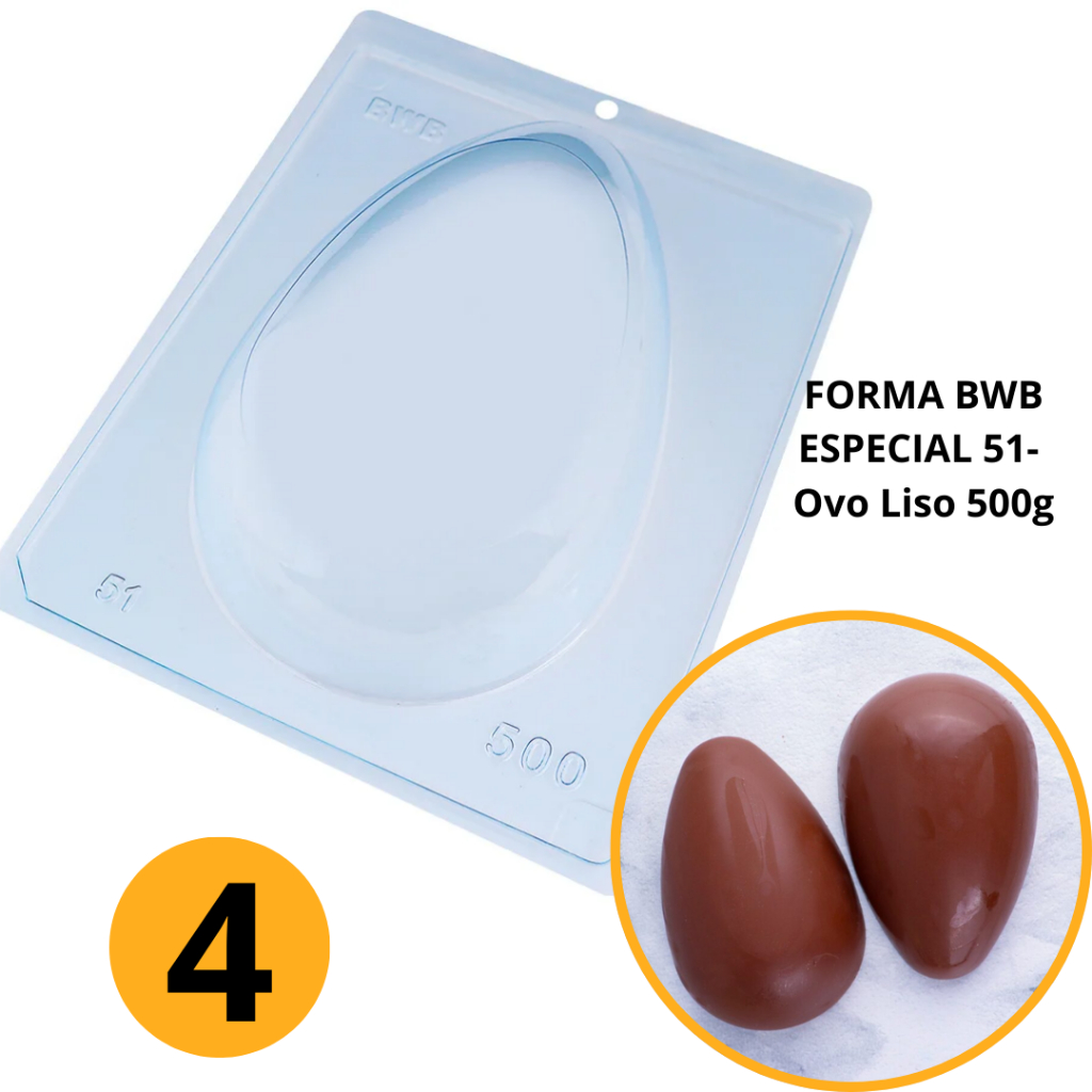 1~4 Forma BWB Com Silicone (3 partes) Para Chocolate Cód. 51 - Ovo Liso 500g. Páscoa