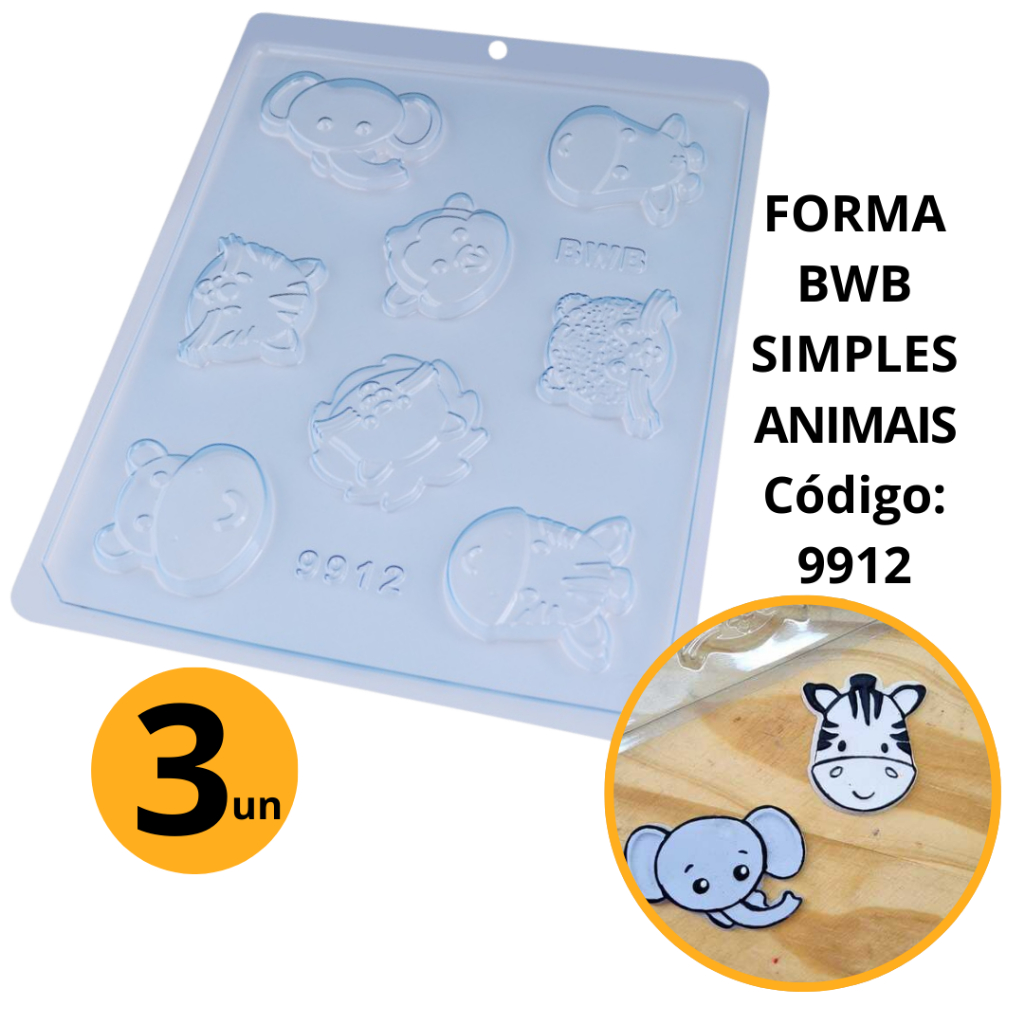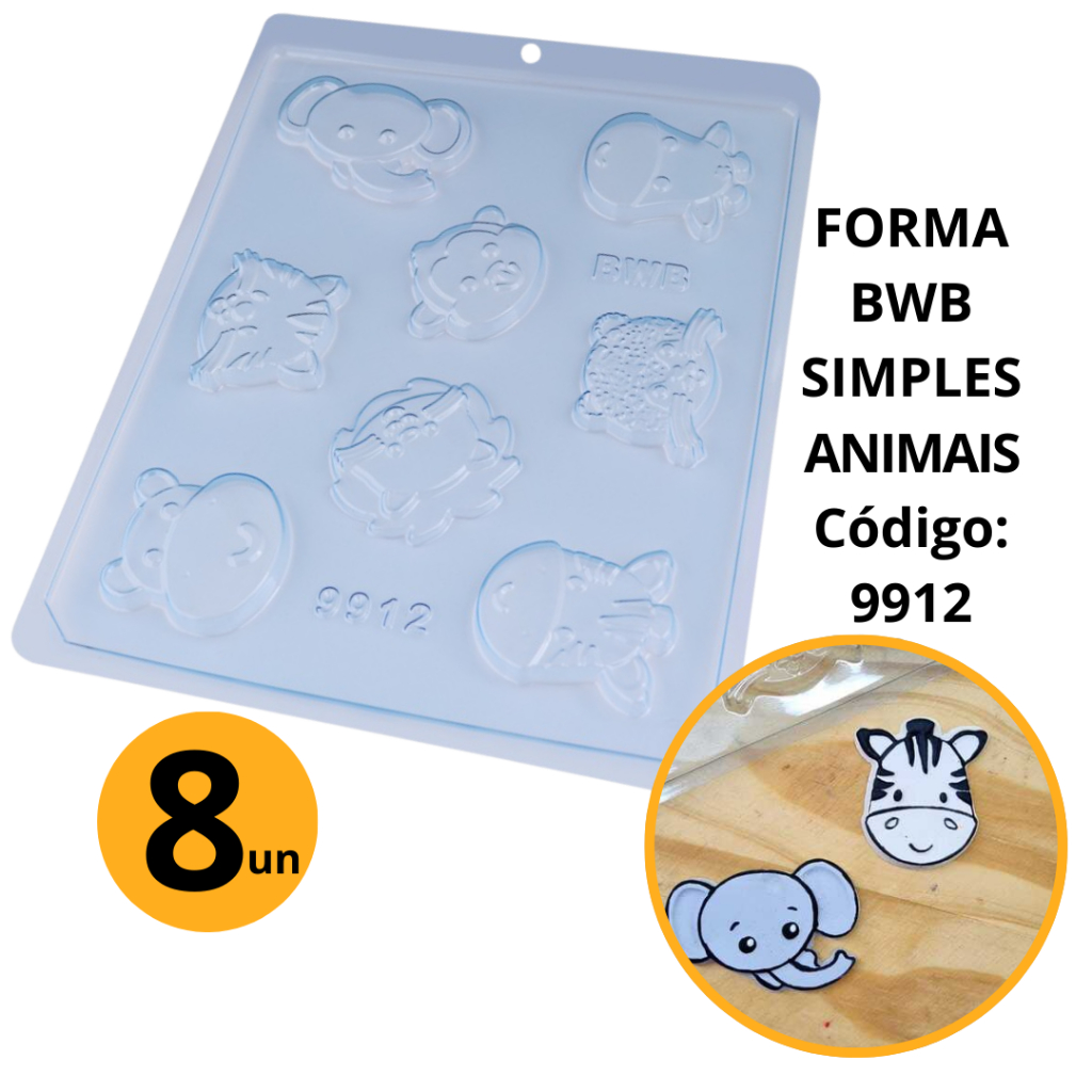 1~10 FORMA SIMPLES ANIMAIS CÓD.:9912 - (M1) EM ACETATO BWB PARA BOMBOM, DOCES DE CHOCOLATE E CONFEITARIA.