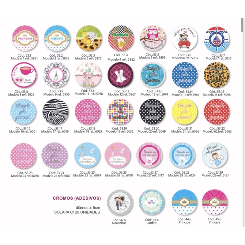 16~20 ADESIVOS REDONDOS LEMBRANCINHAS (50 MODELOS) 5/4CM