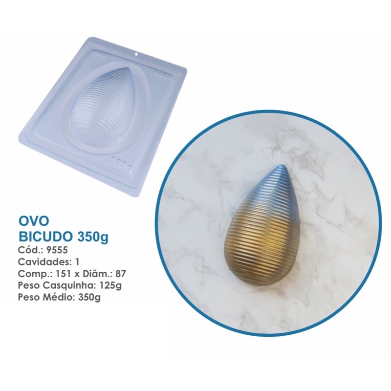 1~4 Forma BWB Com Silicone (3 partes) Para Chocolate Cód. 9555 - Ovo Bicudo 350g. Páscoa (CHOCO)