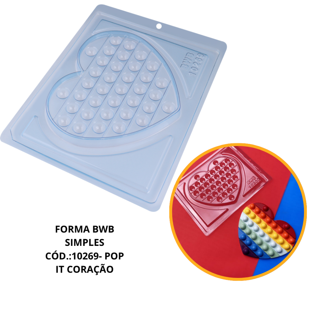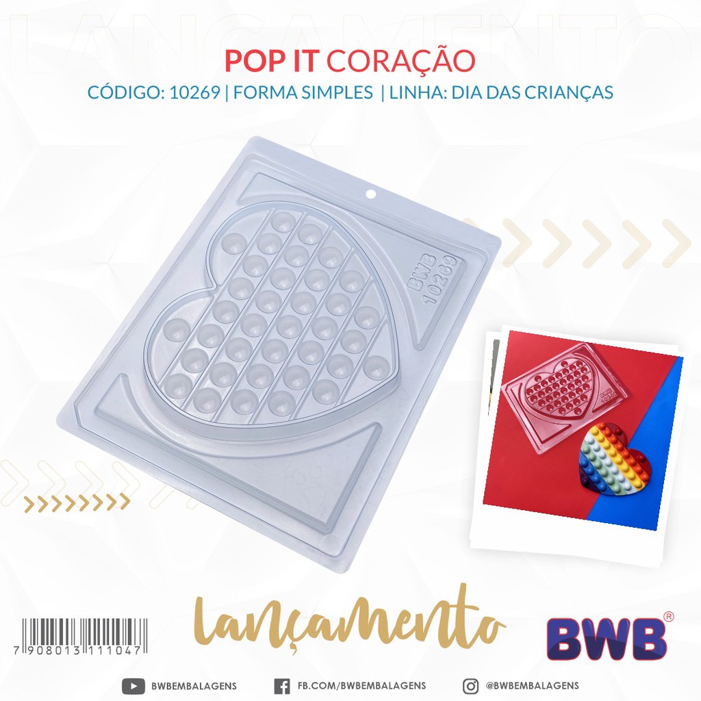 FORMA BWB SIMPLES P/ CHOCOLATE POP ITS FIDGET TOY DIA DAS CRIANÇAS E CONFEITARIA- CÓD.:10269 CORAÇÃO SIMPLES