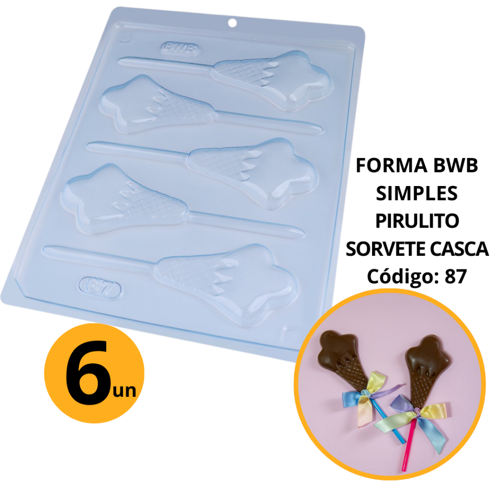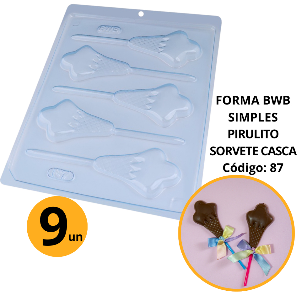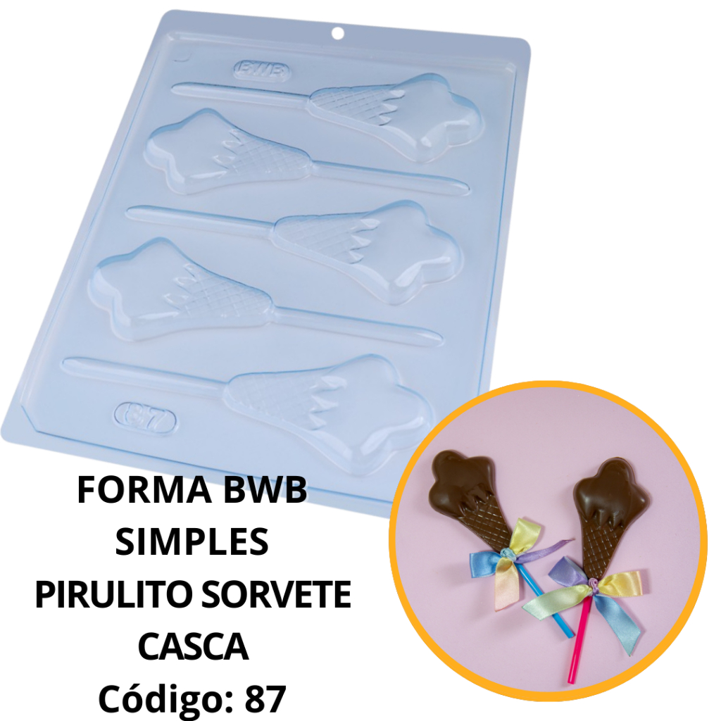 1~10 FORMA SIMPLES PIRULITO SORVETE CASCA CÓD.:87 - (C9) EM ACETATO BWB PARA DOCE DE CHOCOLATE E CONFEITARIA PÁSCOA