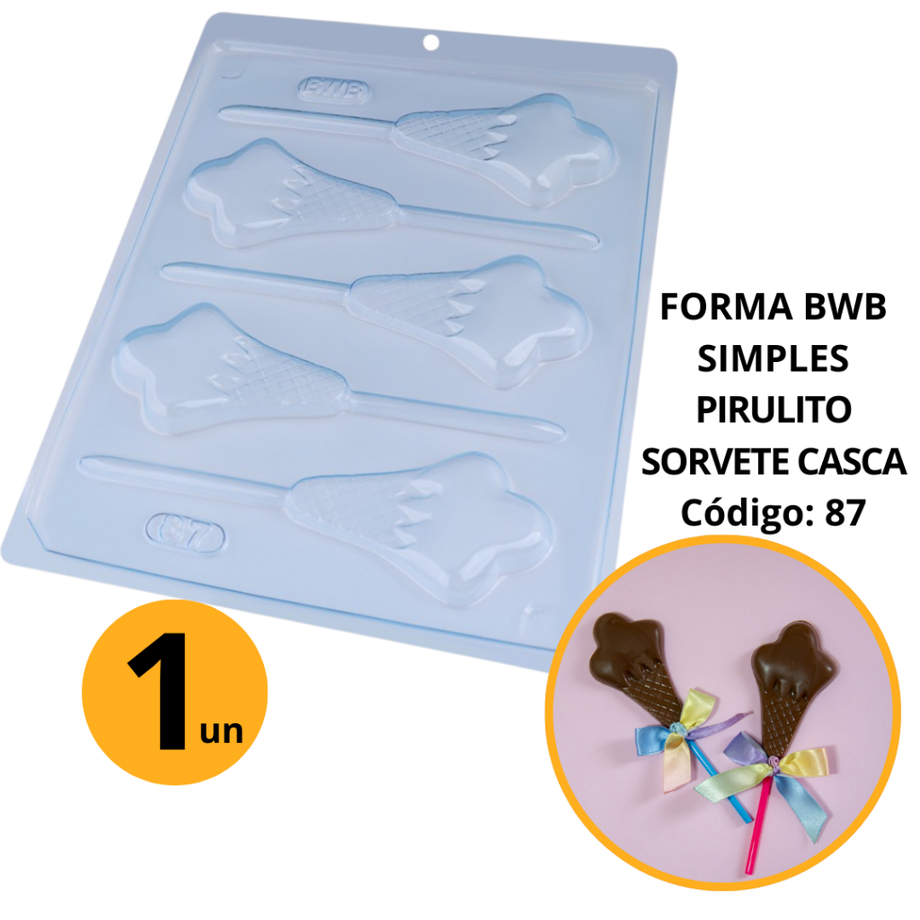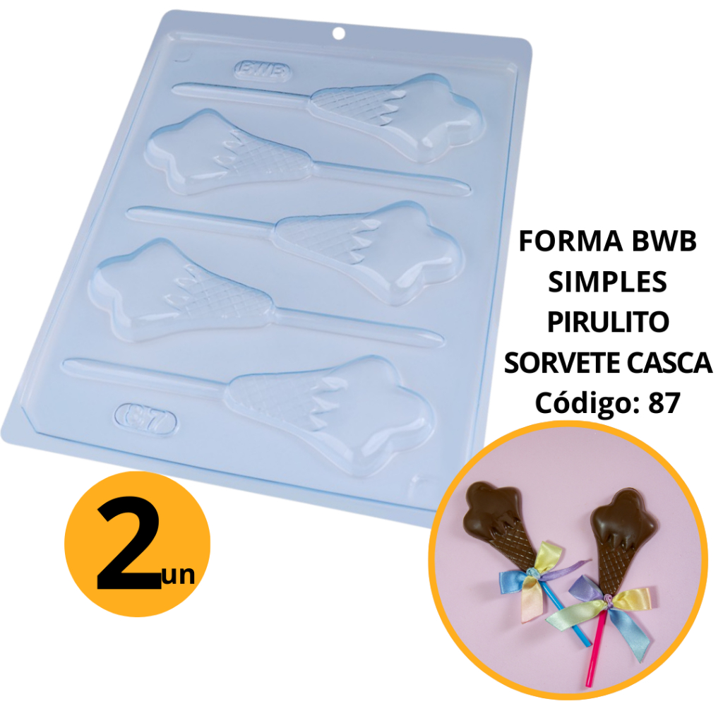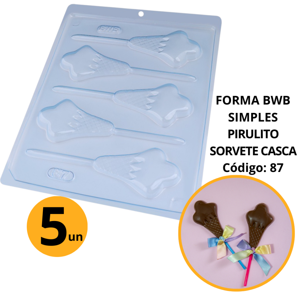 1~10 FORMA SIMPLES PIRULITO SORVETE CASCA CÓD.:87 - (C9) EM ACETATO BWB PARA DOCE DE CHOCOLATE E CONFEITARIA PÁSCOA