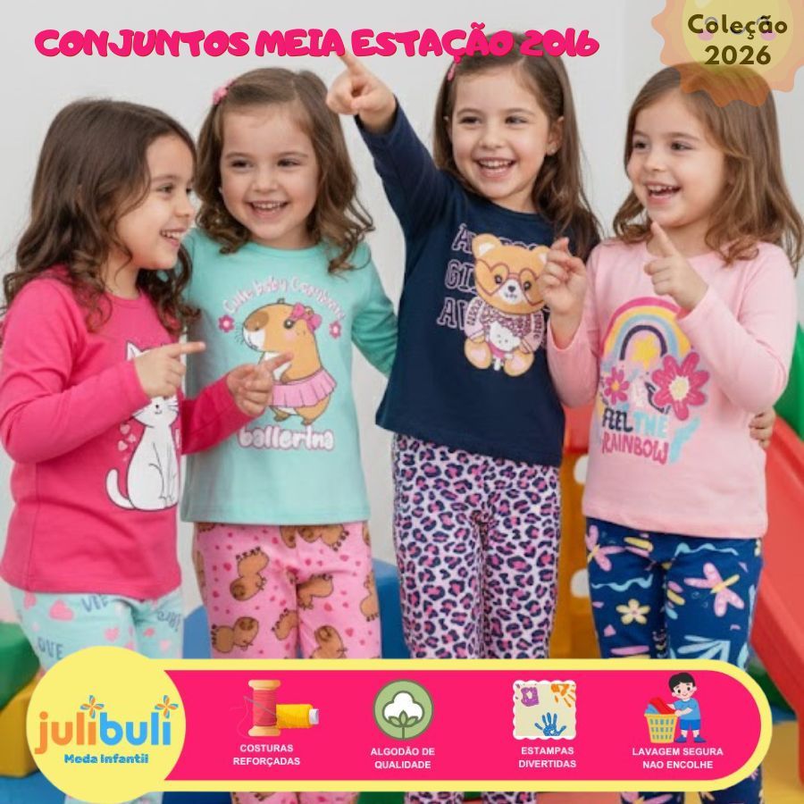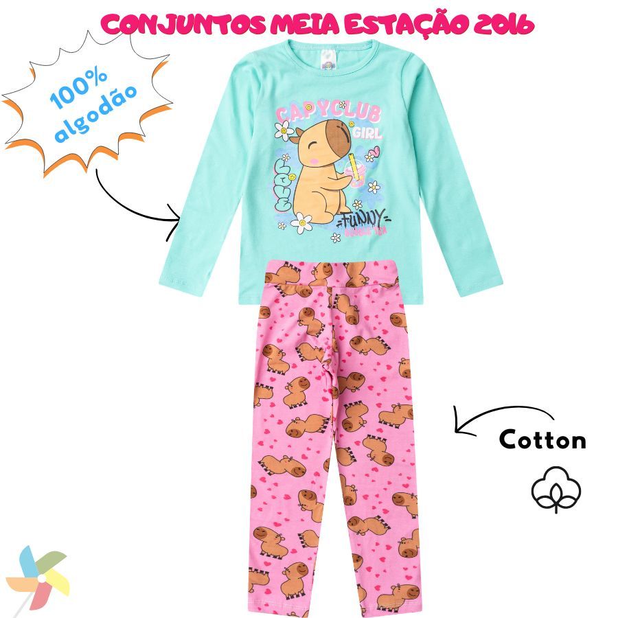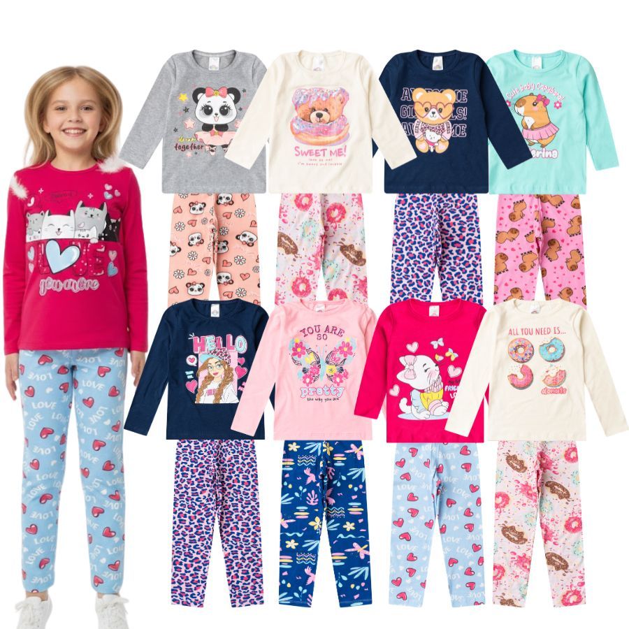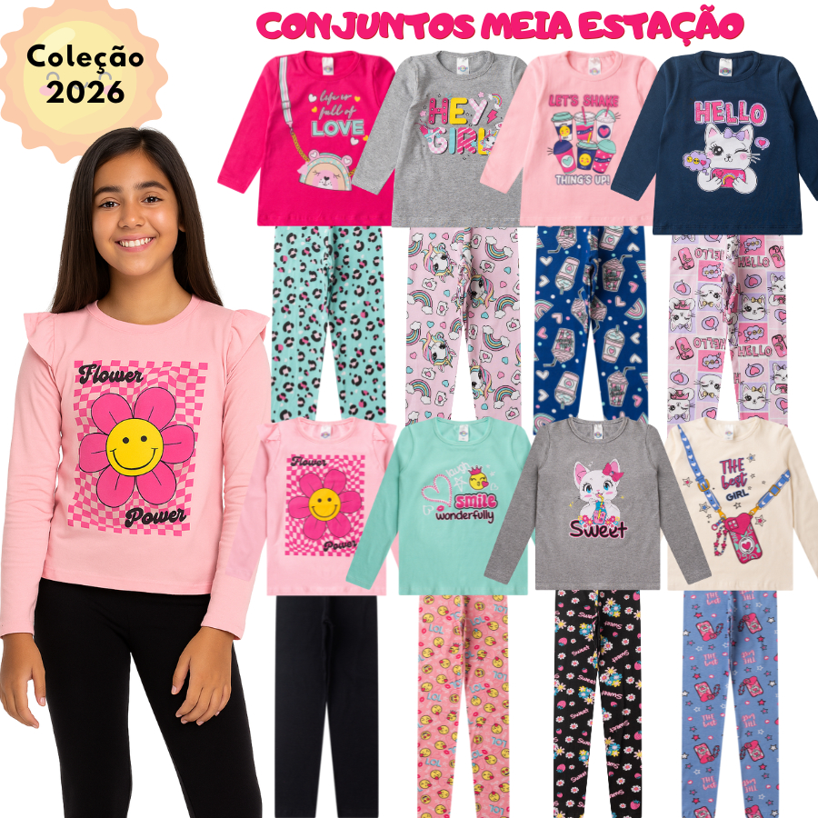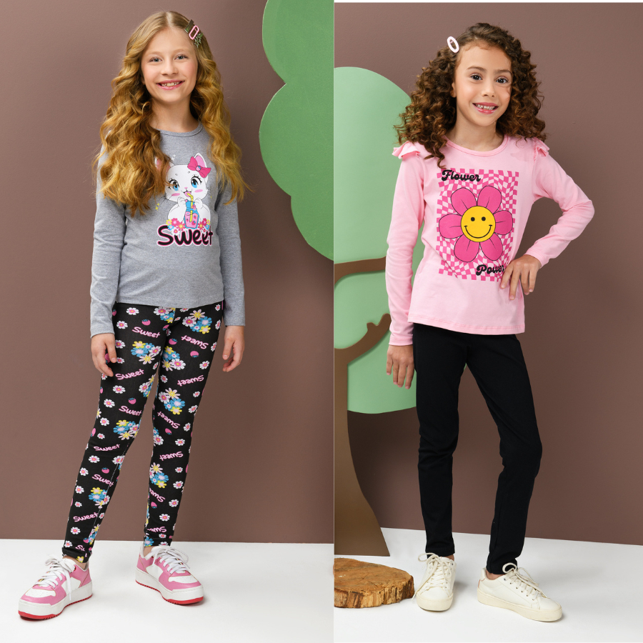 Kit Sortido 4 Peças 1/2 ESTAÇÃO de Roupas Feminino Infantil Inverno - 2 camisas manga longa +2 calças legging de 1 ao 16