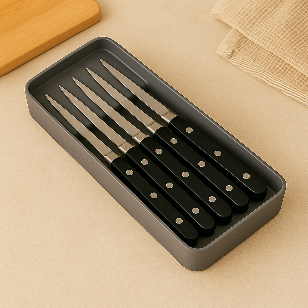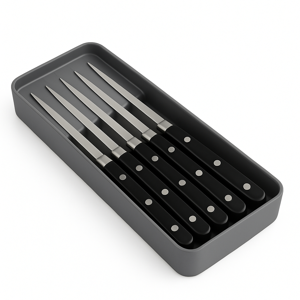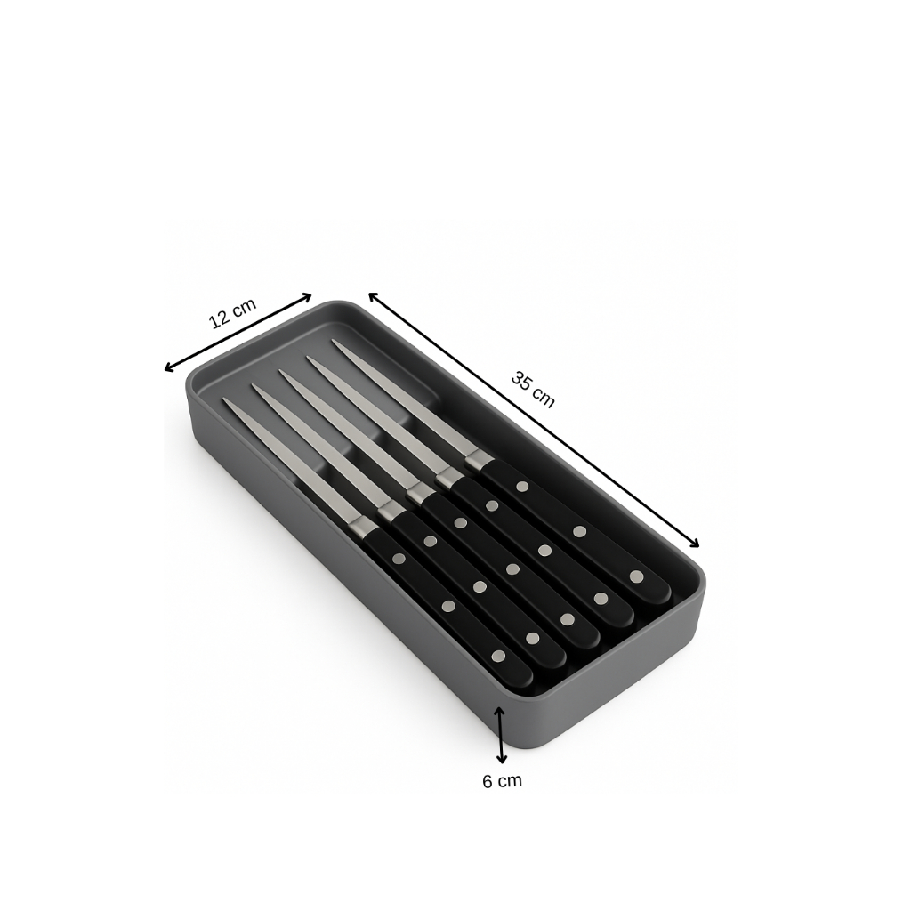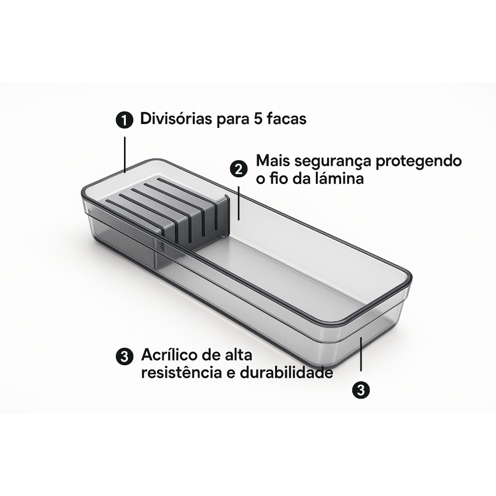 Organizador de Gaveta Porta Facas 5 Divisorias Transparente ou Cinza Acrilico Resistente
