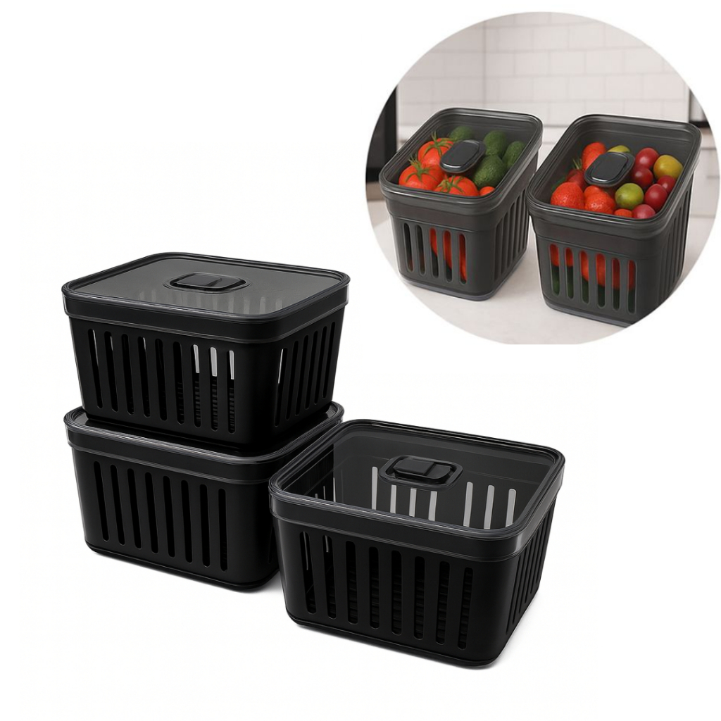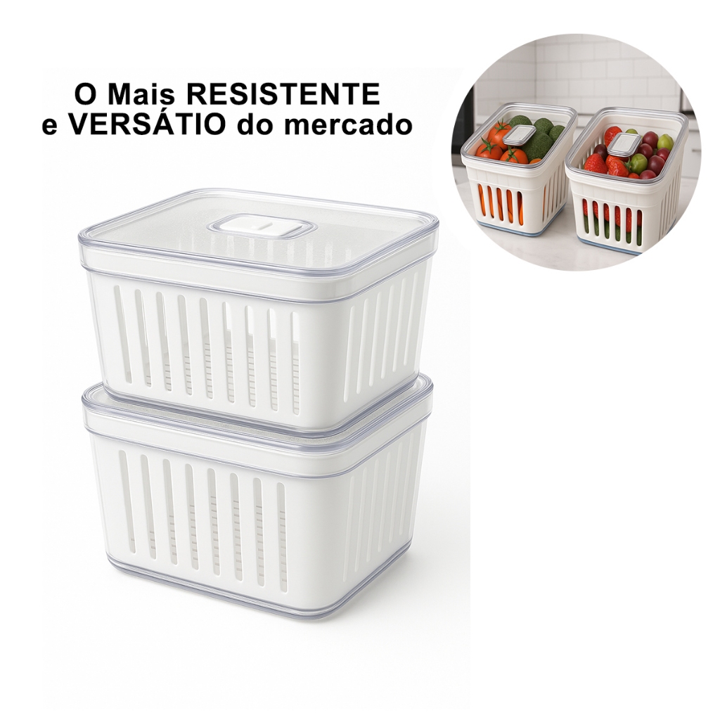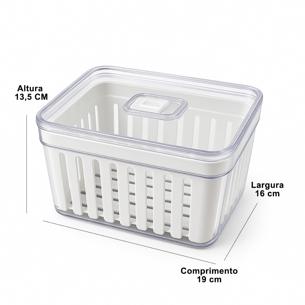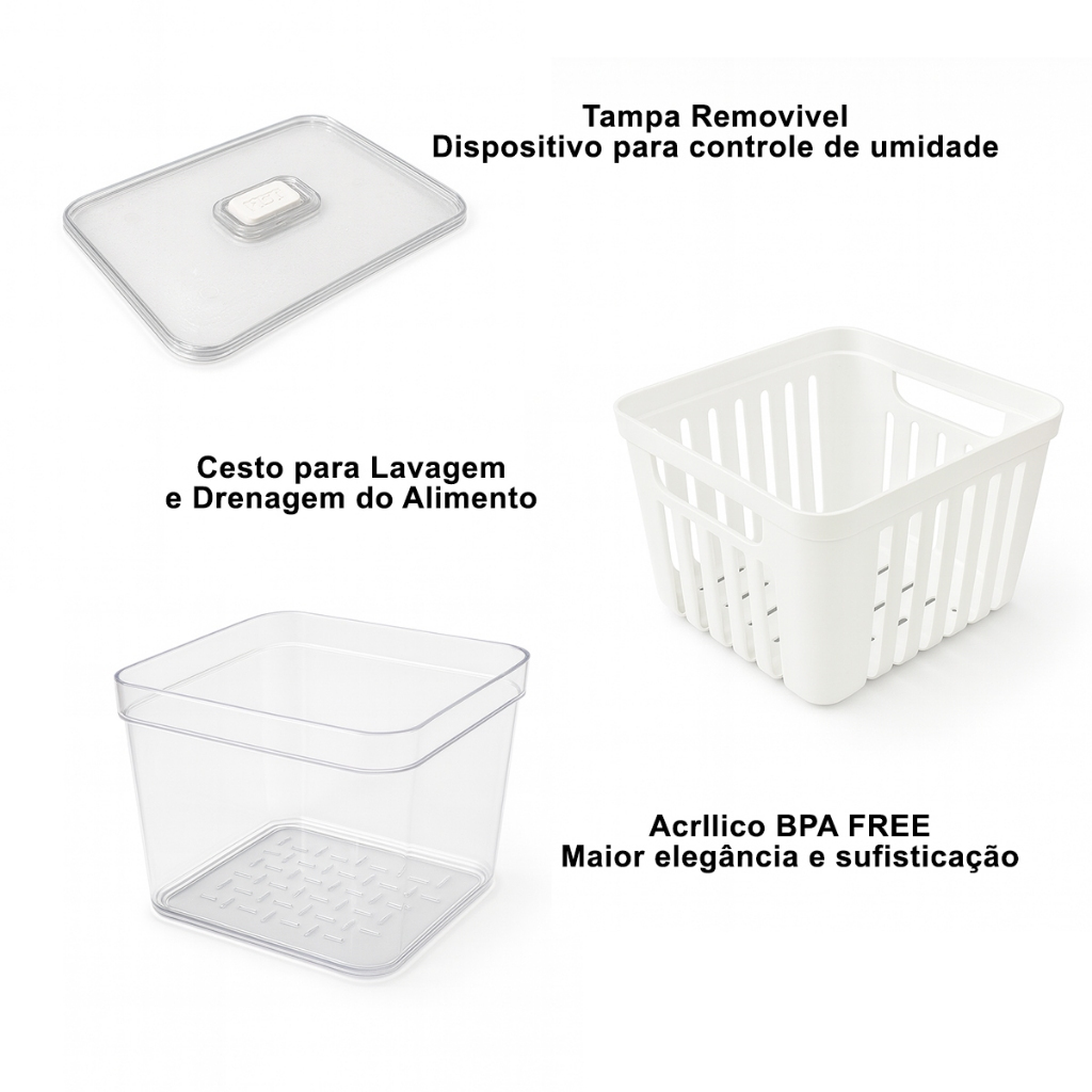 Kit Organizador de Geladeira 3,8 Litros Cesto Com Tampa Multiuso Alimentos Verduras e Vegetais
