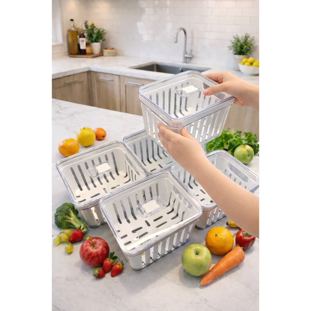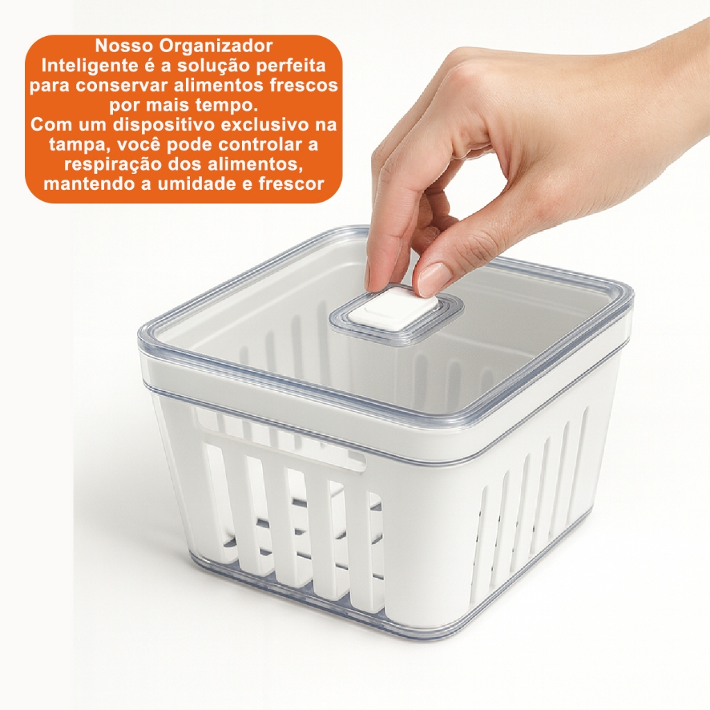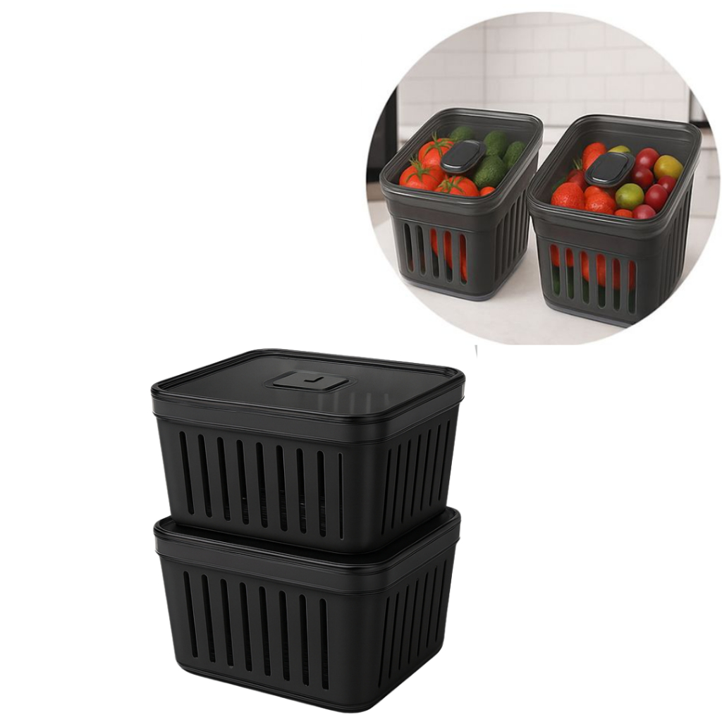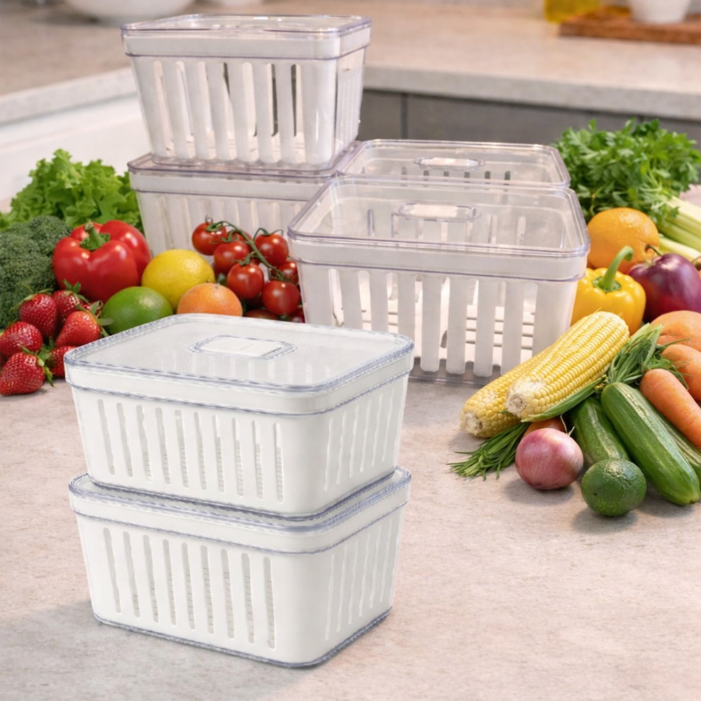 Kit Organizador de Geladeira 3,8 Litros Cesto Com Tampa Multiuso Alimentos Verduras e Vegetais