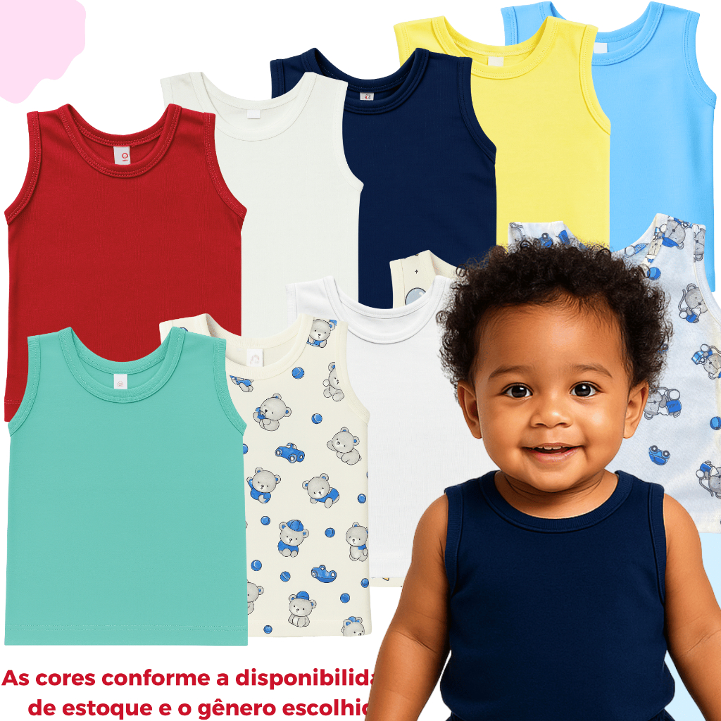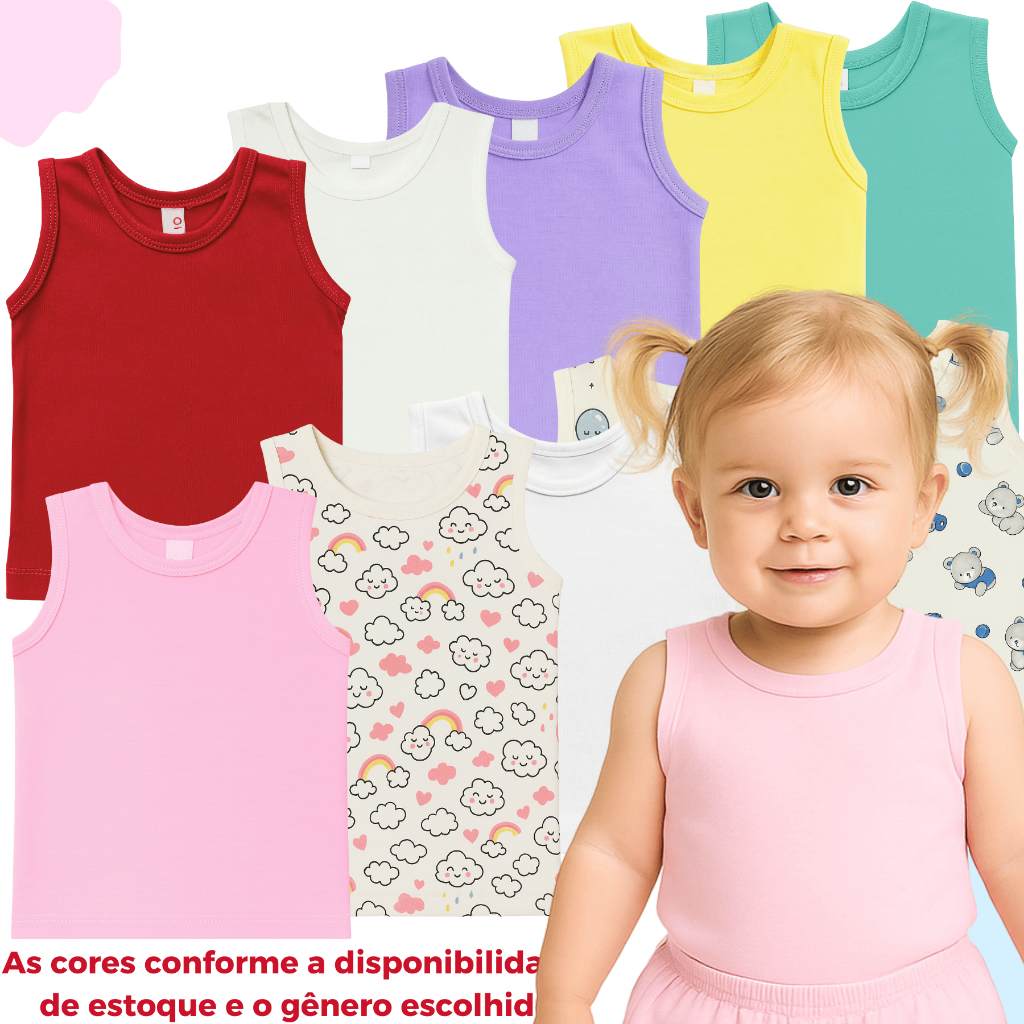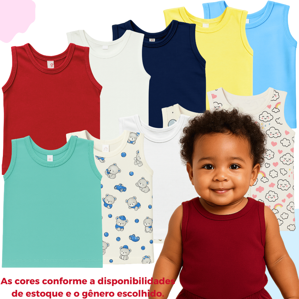 Regatas Algodão Kit 10 Camisetas Blusa bebê Pijama Menino Menina Verão Lisas Estampadas Enxoval 100% Algodão