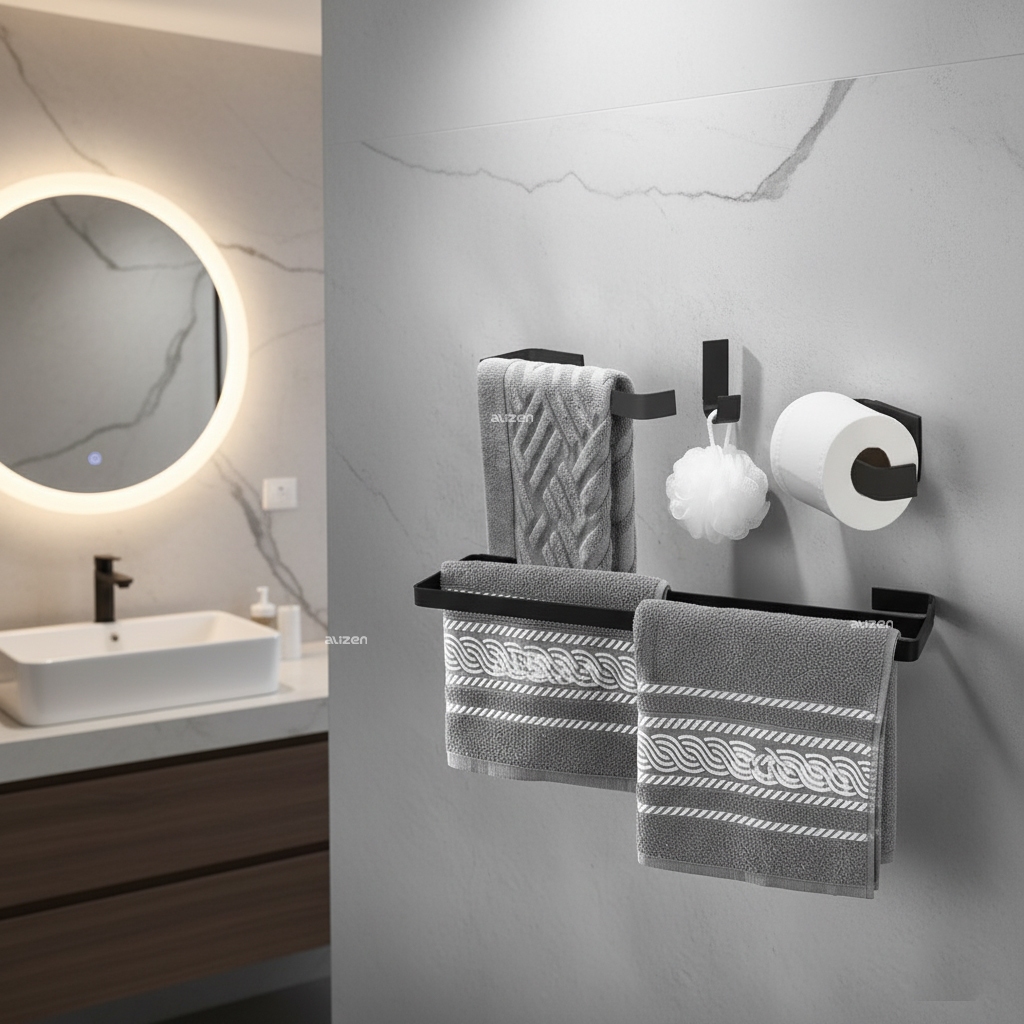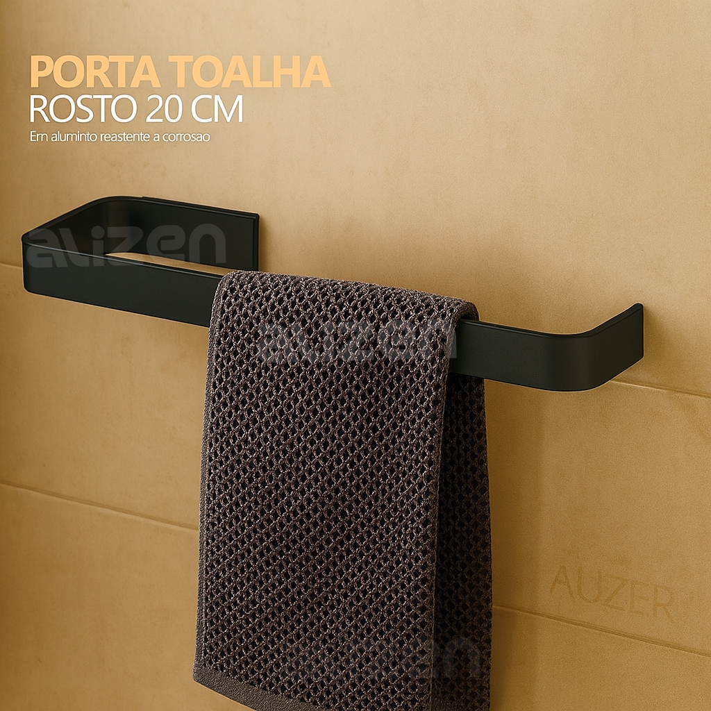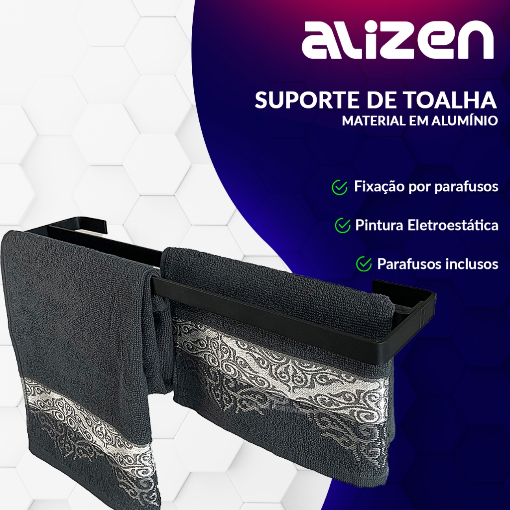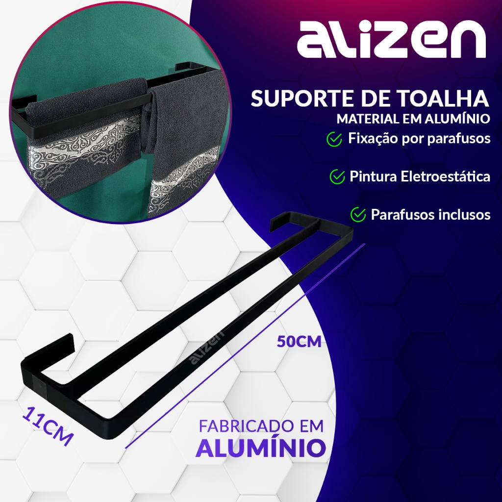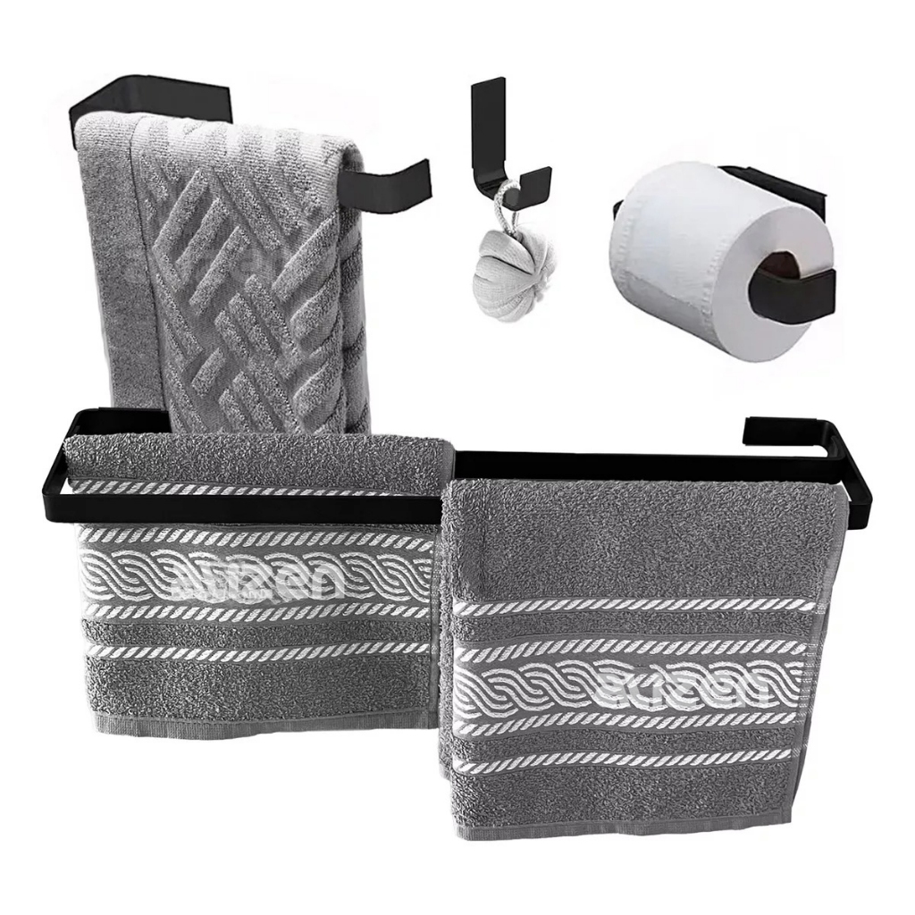 Kit Banheiro Toalheiro Duplo Acessórios Banheiro Preto Suporte Toalheiro Duplo Casal