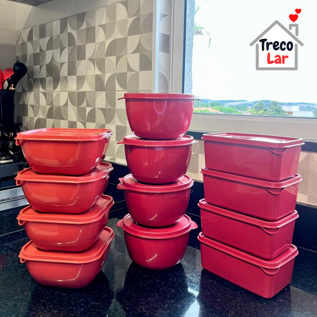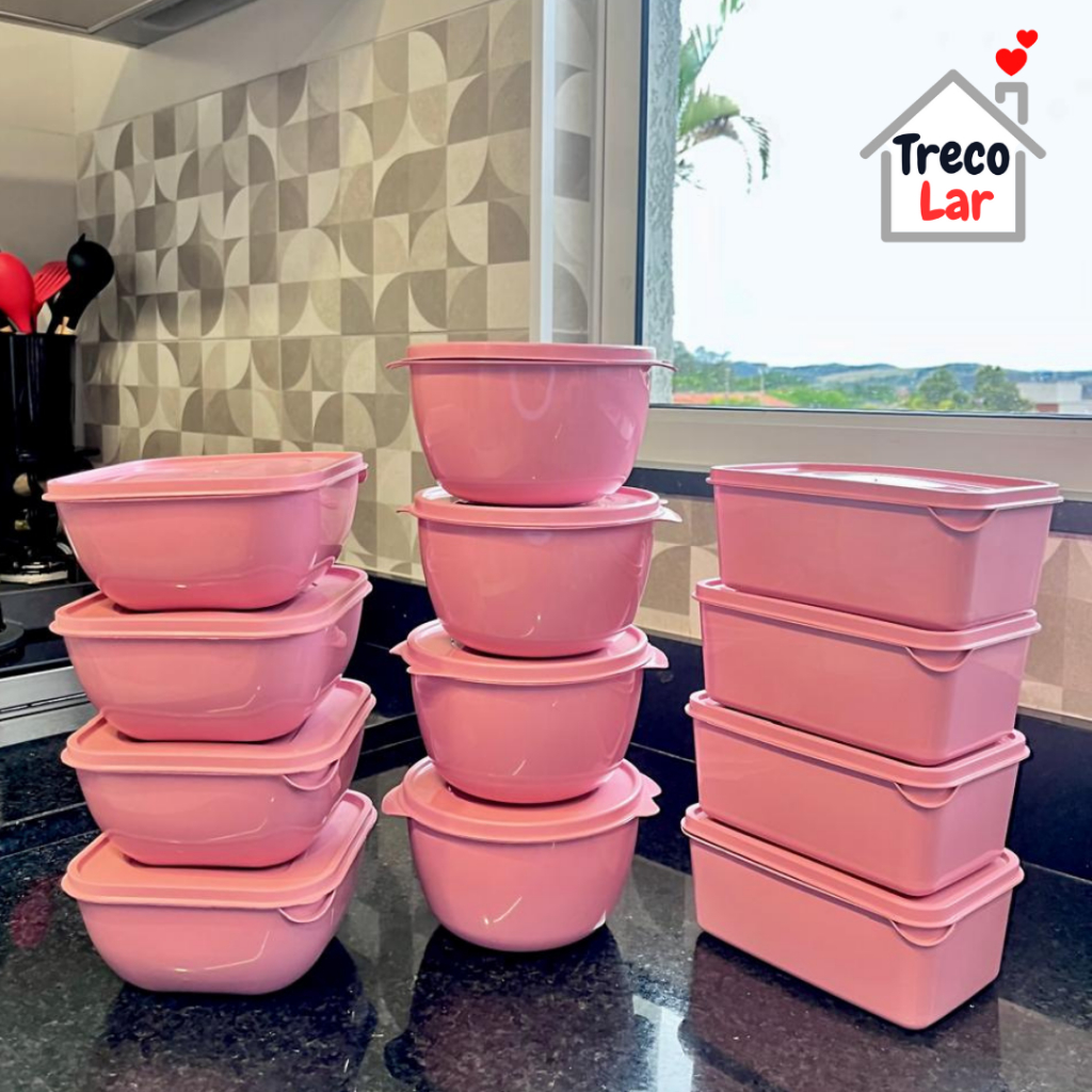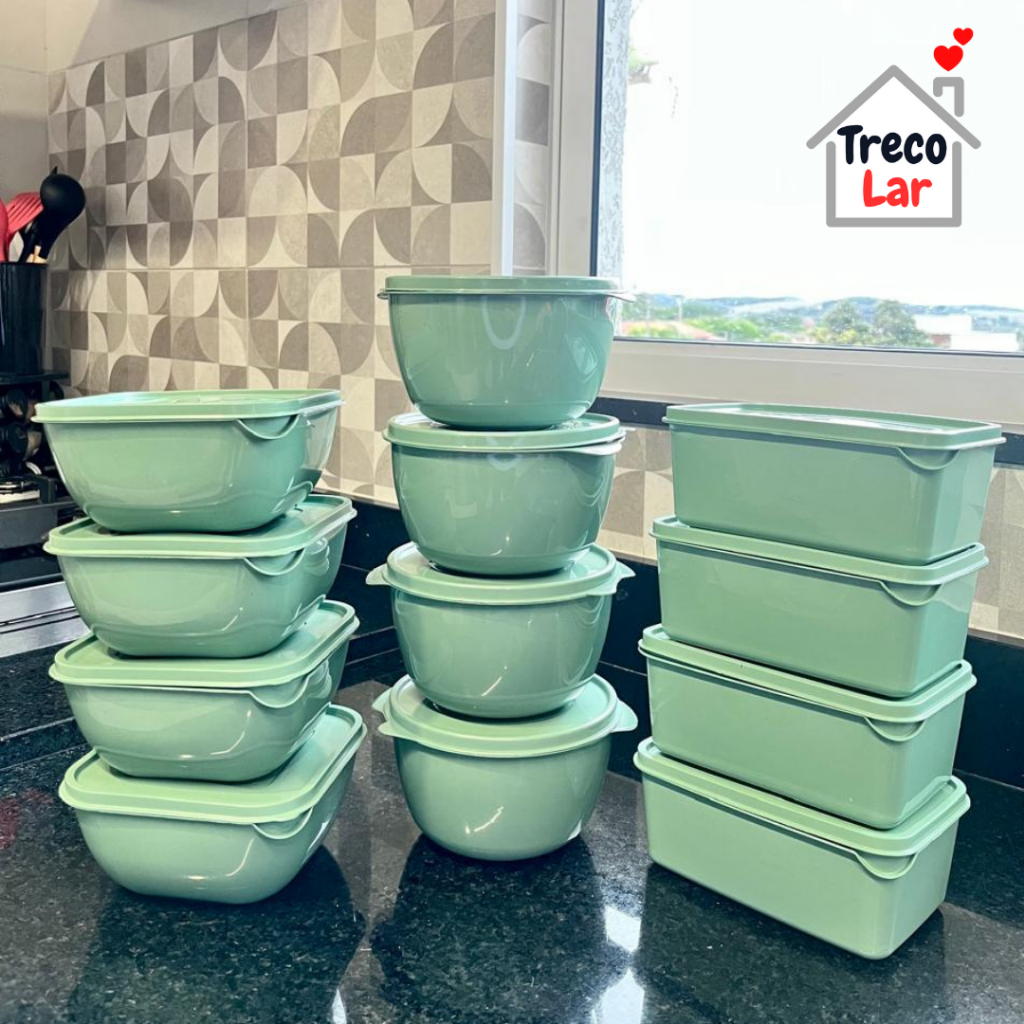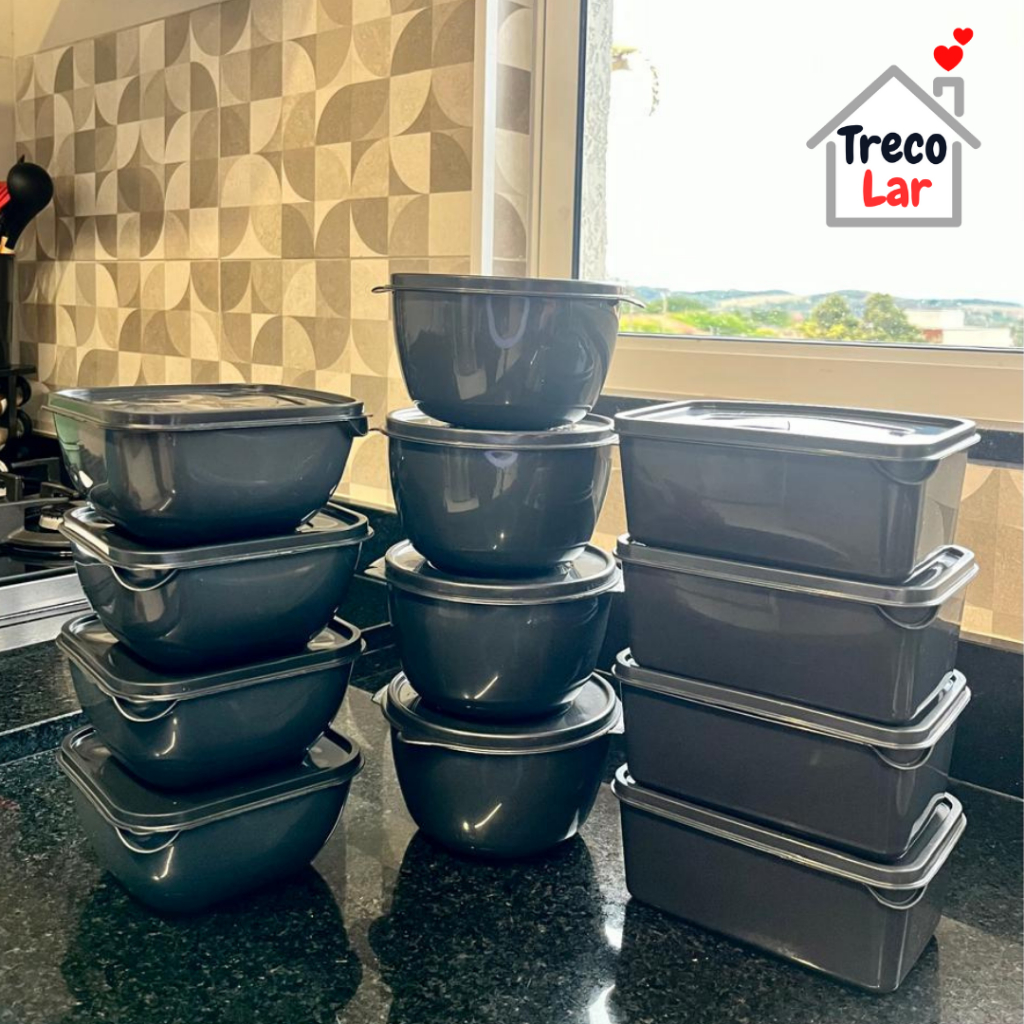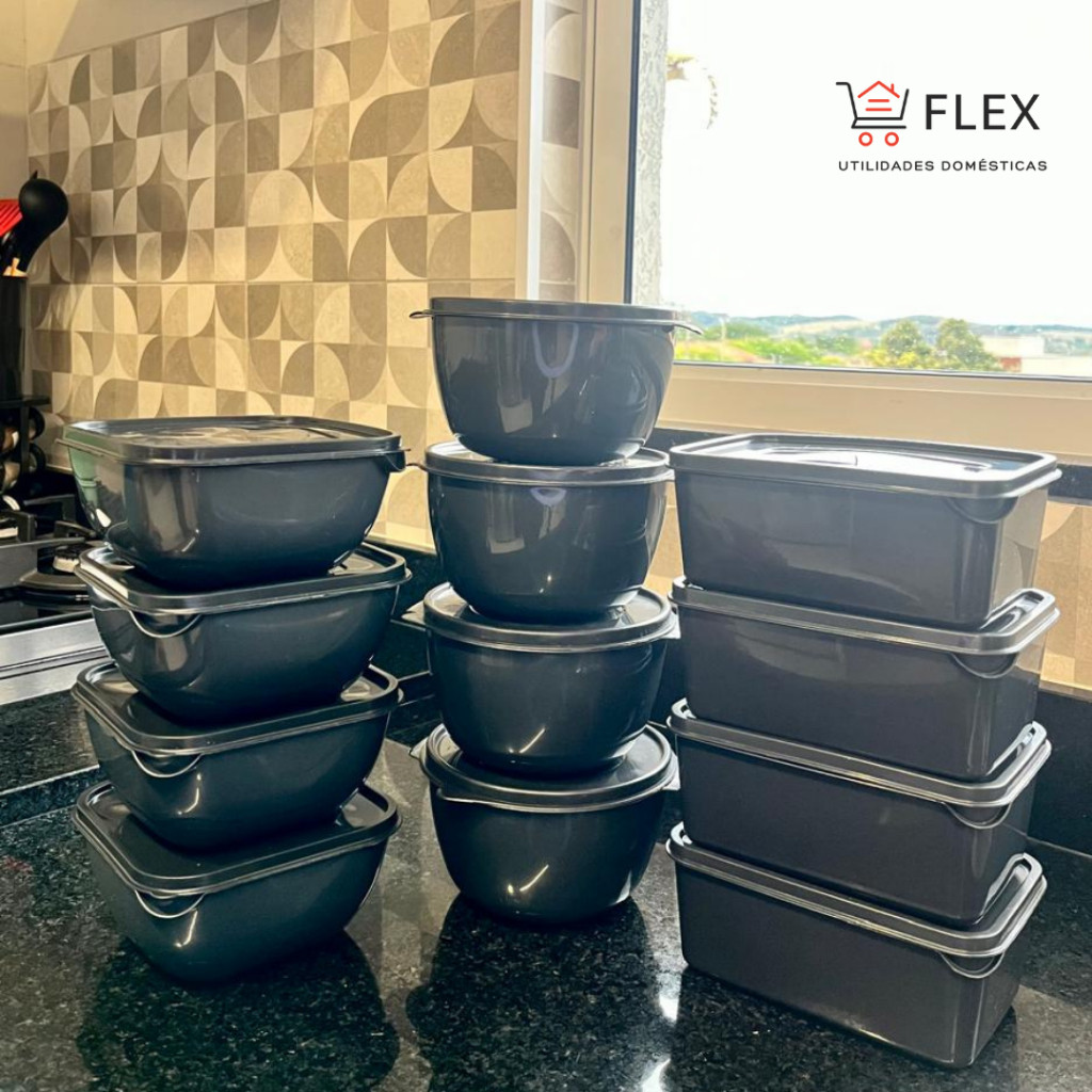 Kit 12 Potes Plásticos - Formatos Variados - Vai ao Micro-ondas e Freezer - 1 Litro