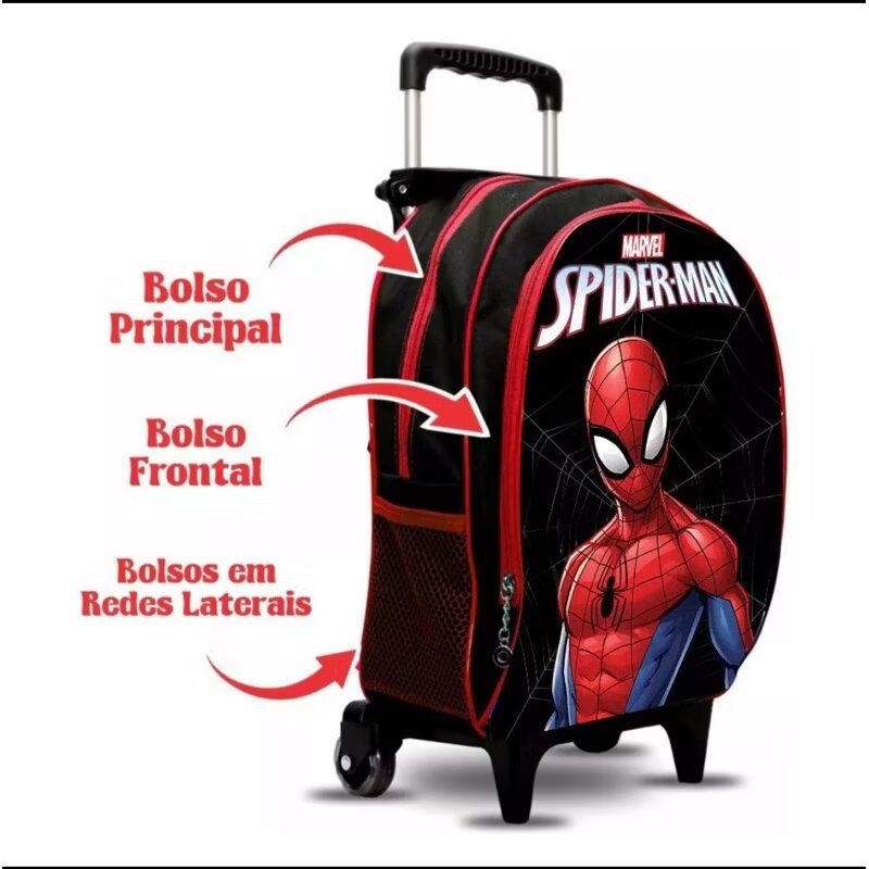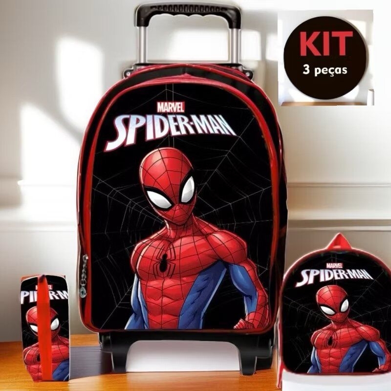 Kit Mochila Escolar Rodinha Spiderman - Estojo - Lancheira - masculino - menino