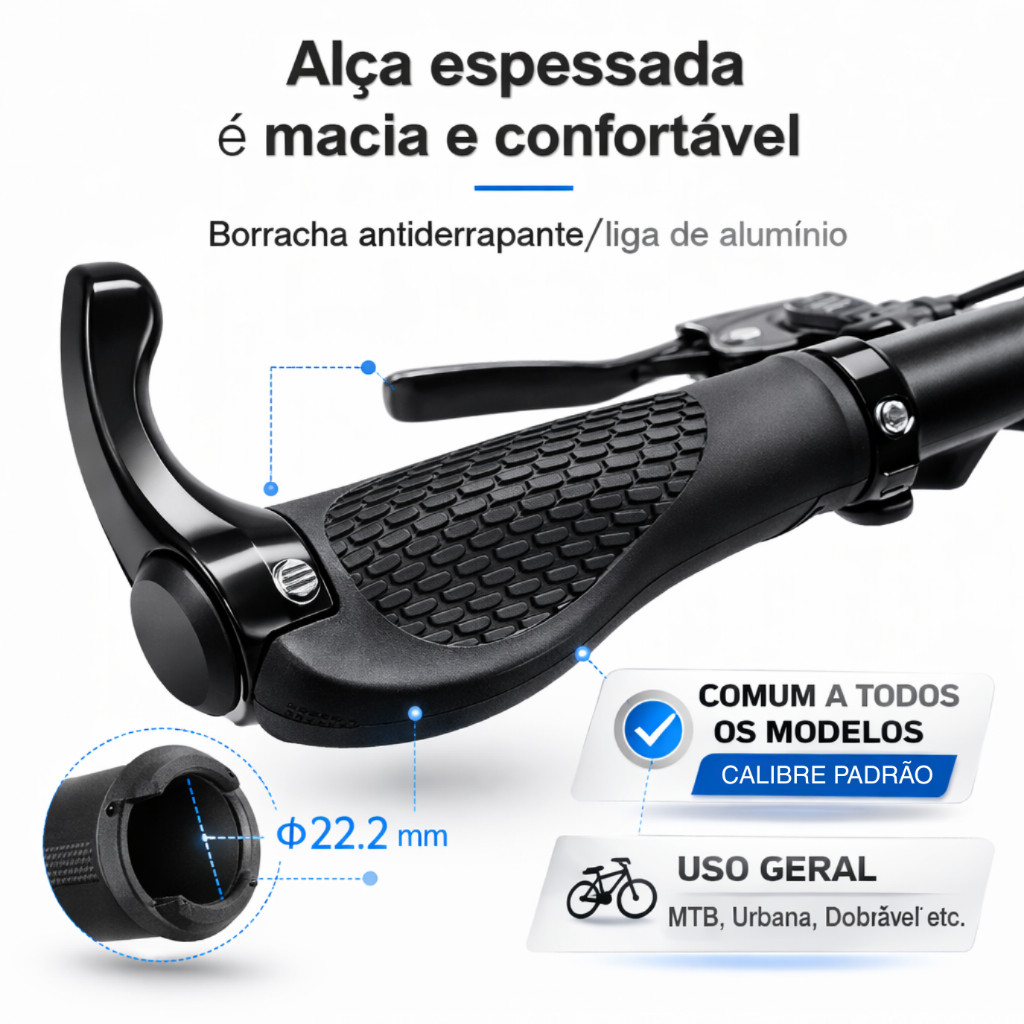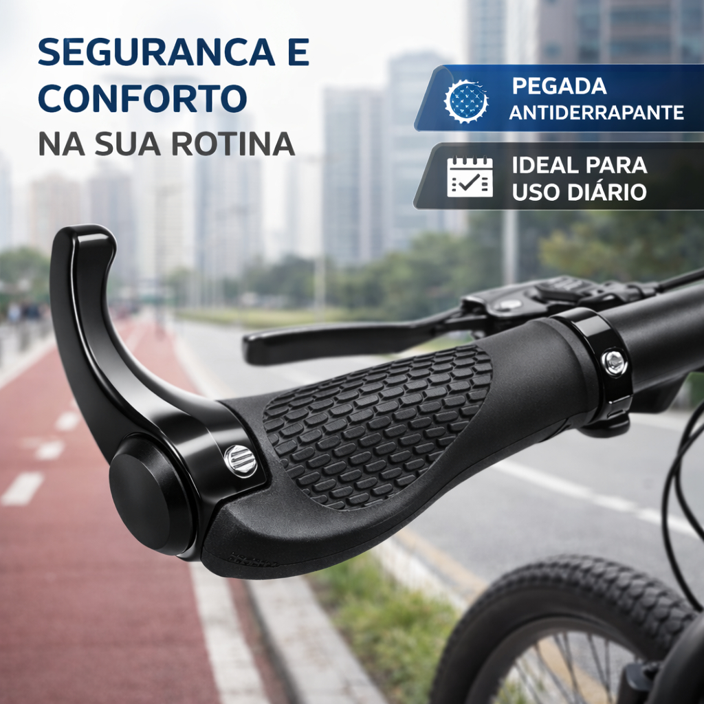 Manopla Bike Ergonômica com Trava Dupla Alumínio Absorção de Impacto