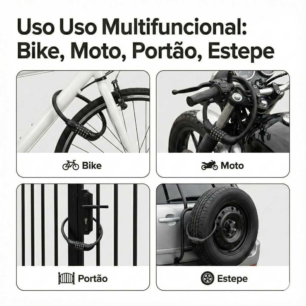 Cadeado com Combinação Numérica 4 Dígitos Proteção para Bike Moto e Portão