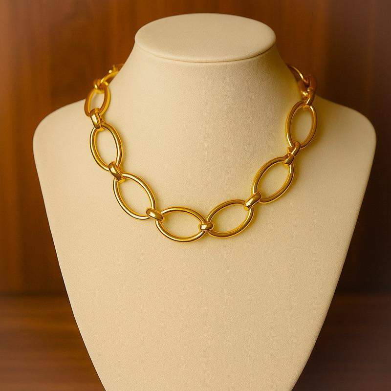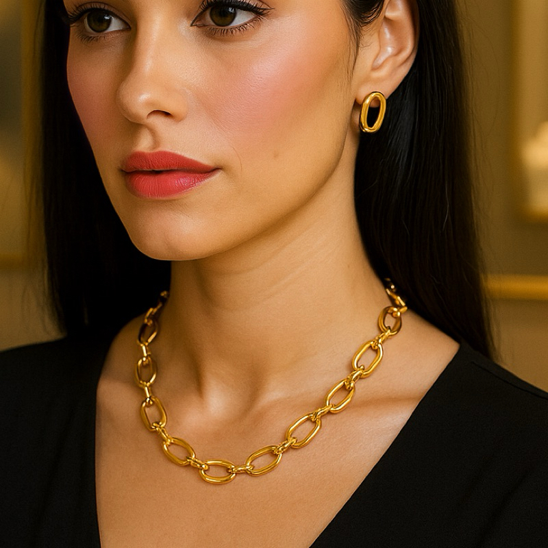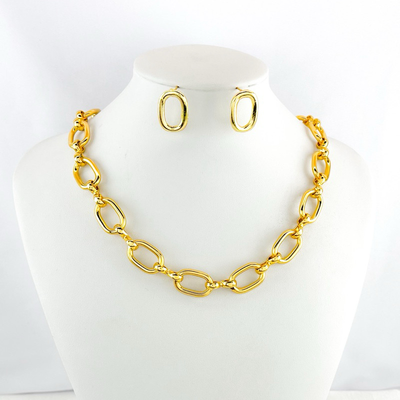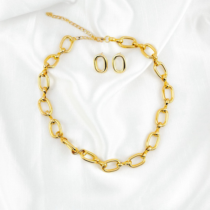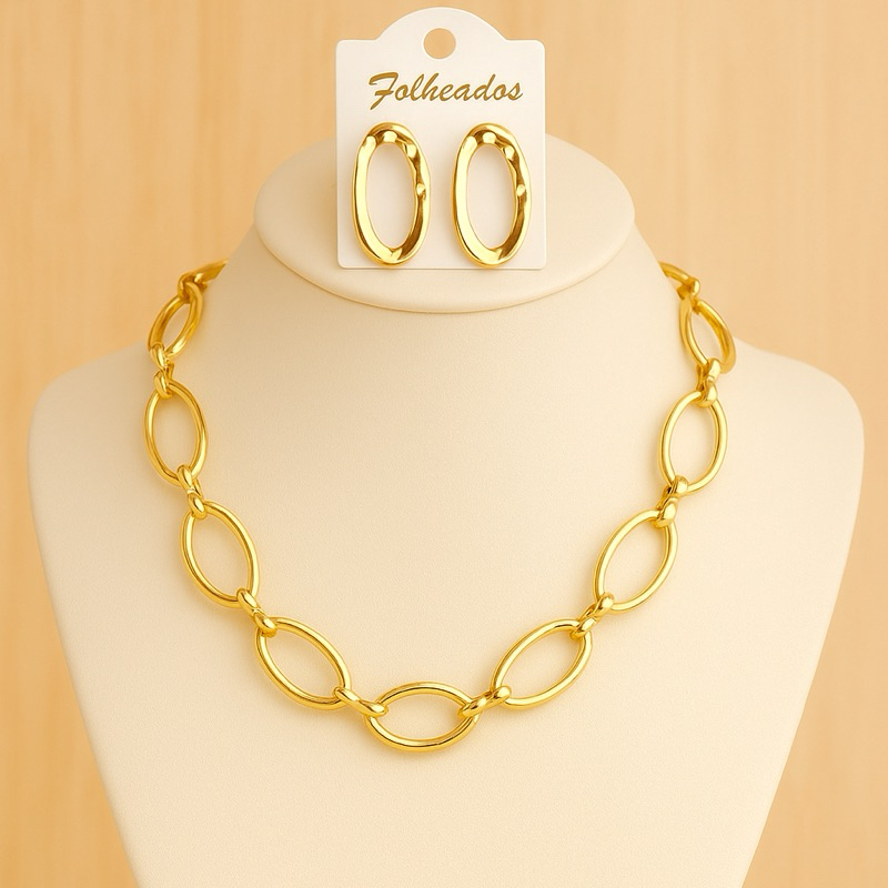 kit colar e Brinco Elo dourado