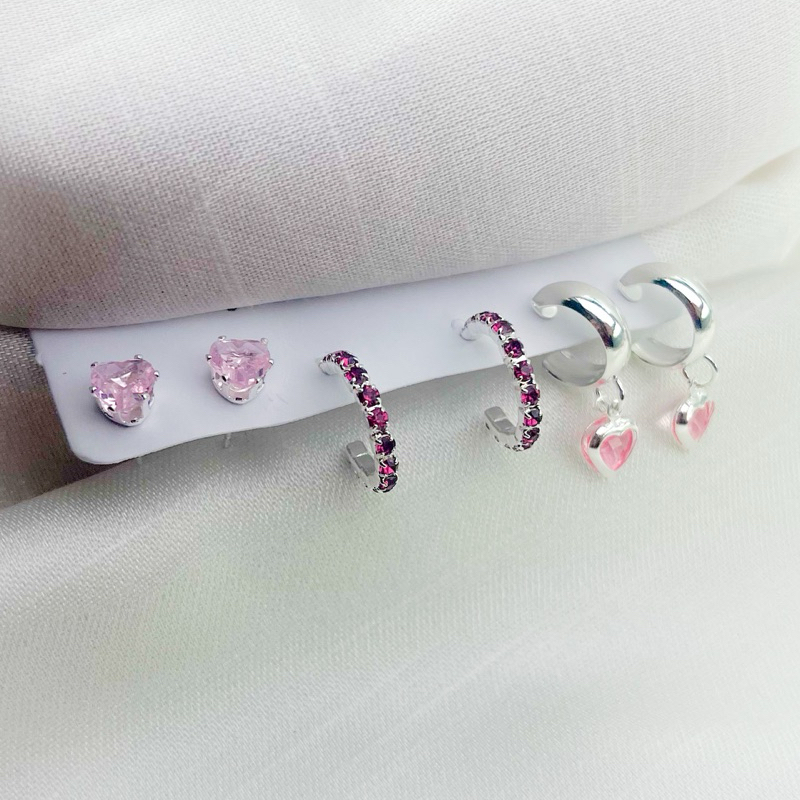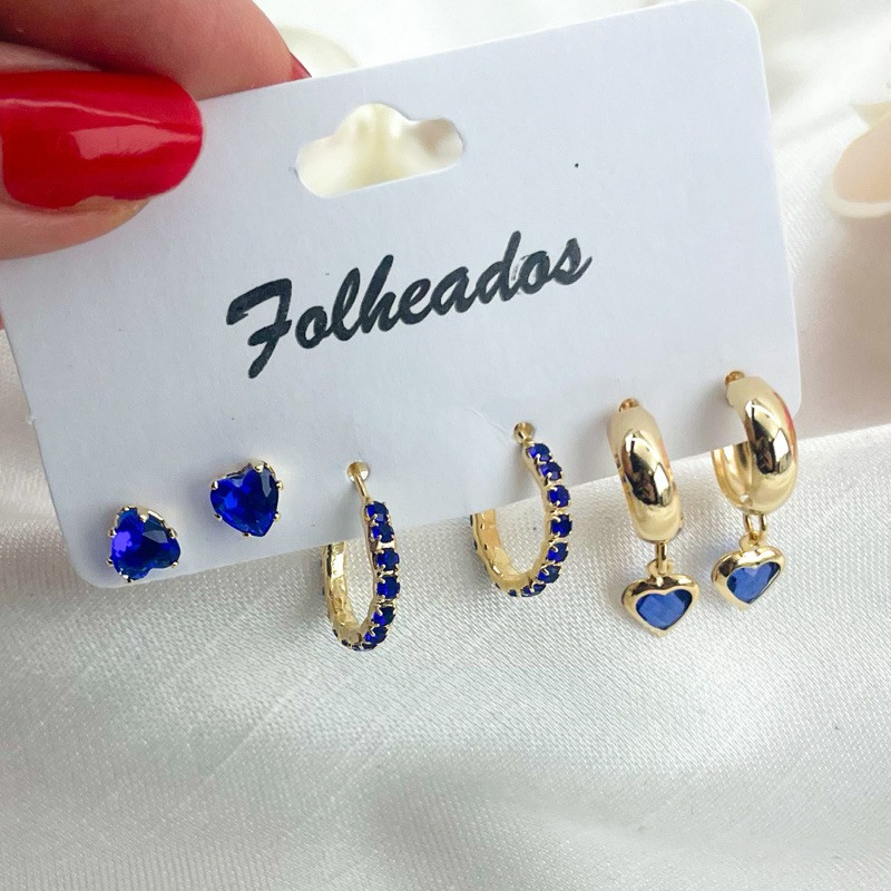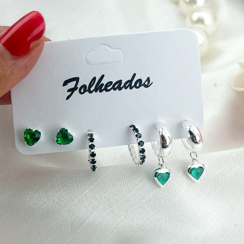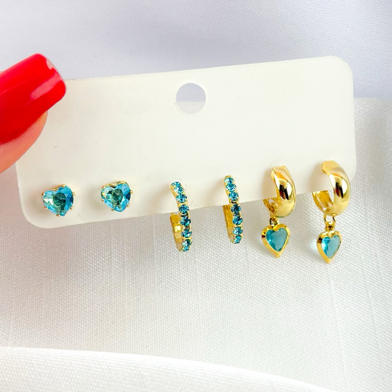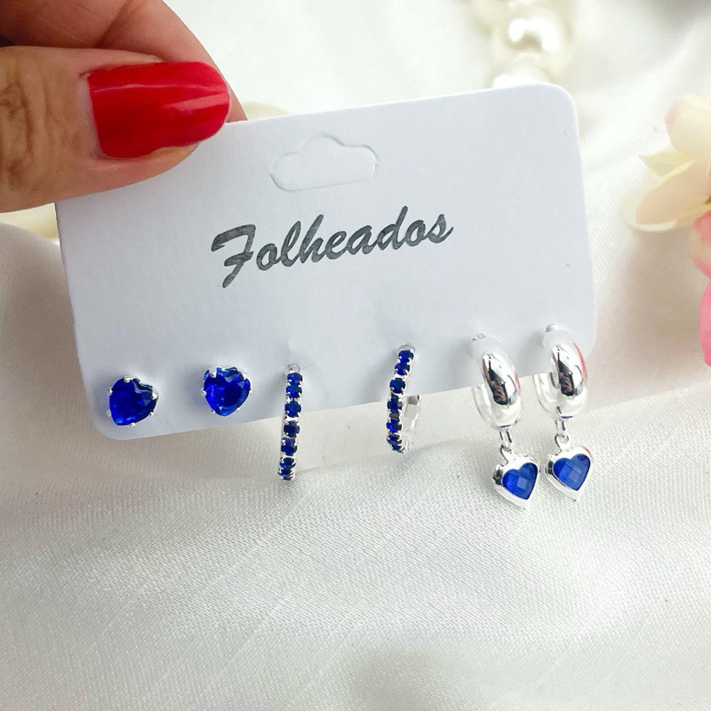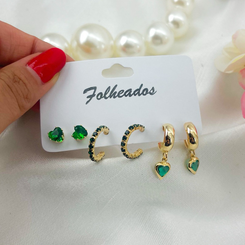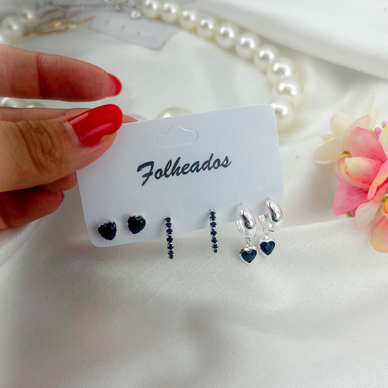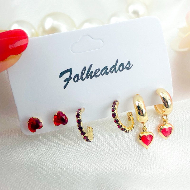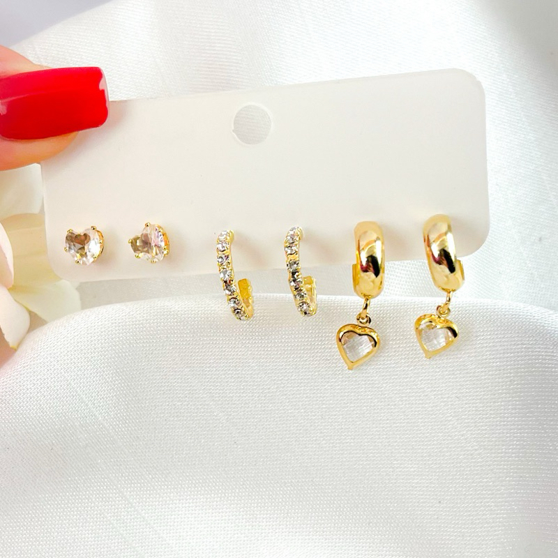 Trio de Brincos folheados delicados elegante várias cores dourado ou prata