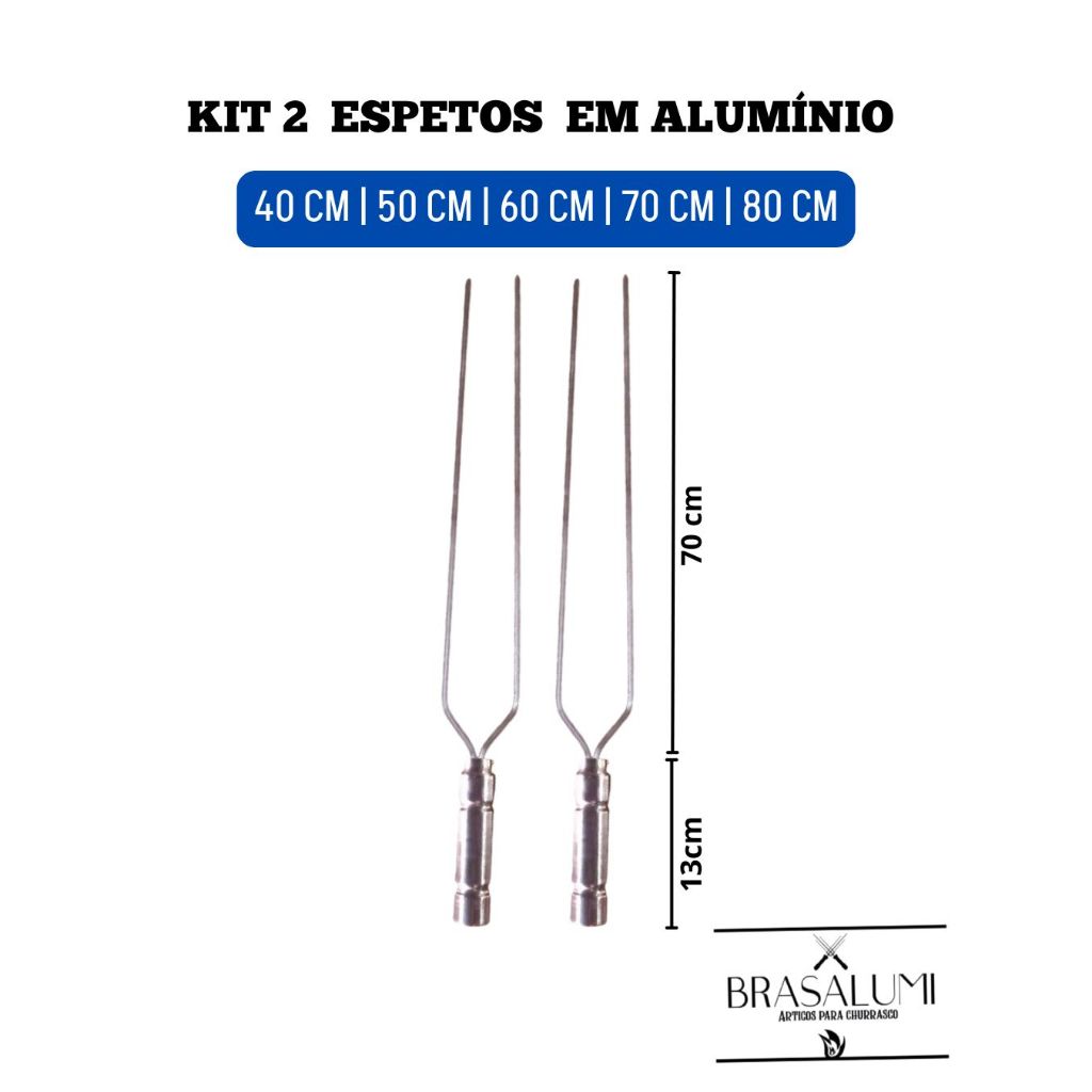 kit 2 espetos duplos de alumínio 40 a 80cm churrasco