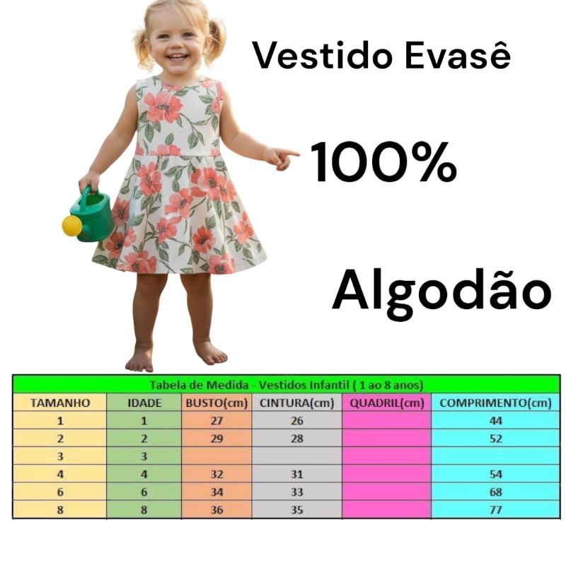 vestido menina floral 100%Algodão