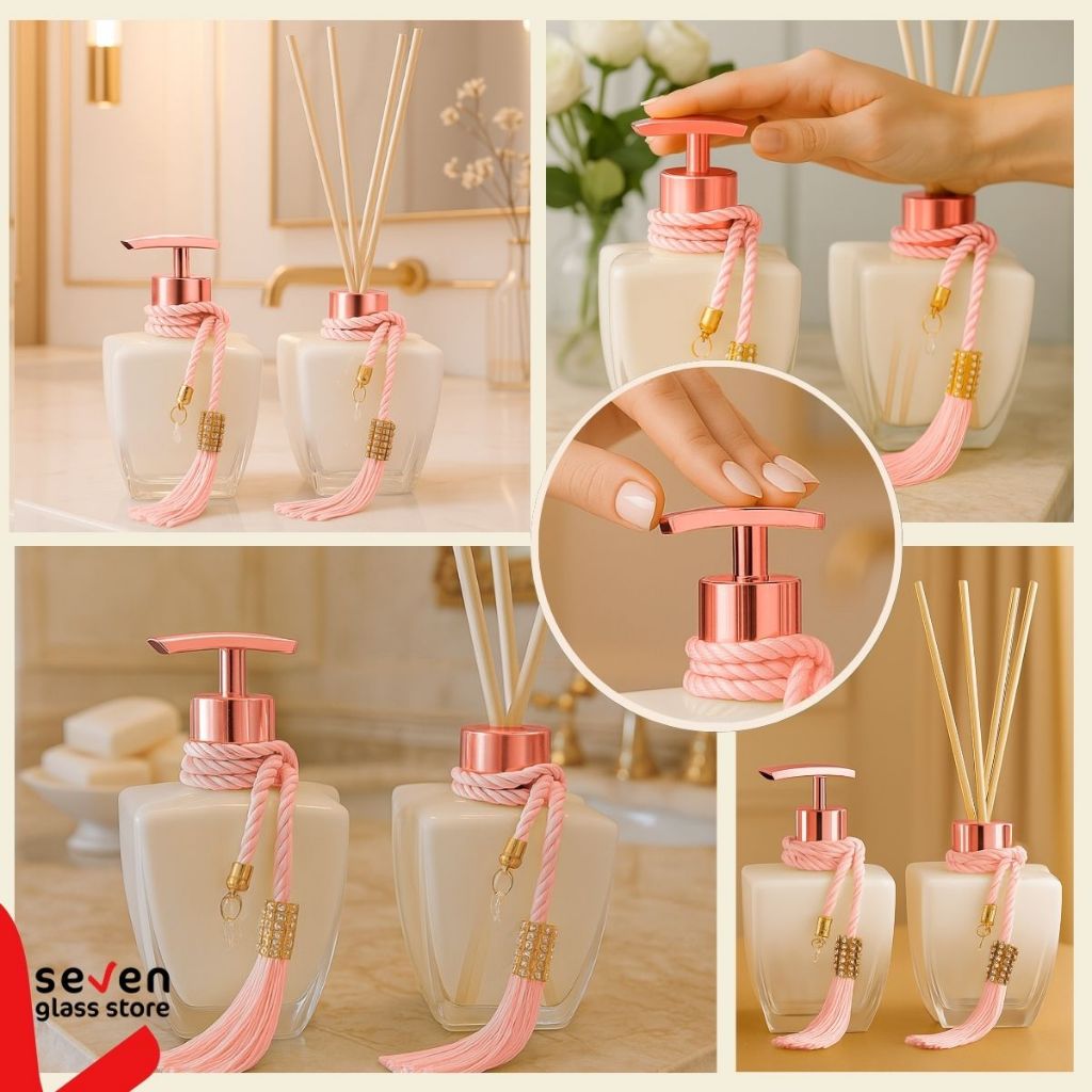 Kit Vidros Banheiro Luxo Degradê Branco Completo com Porta Sabonete Líquido e Difusor de Ambiente Elegante