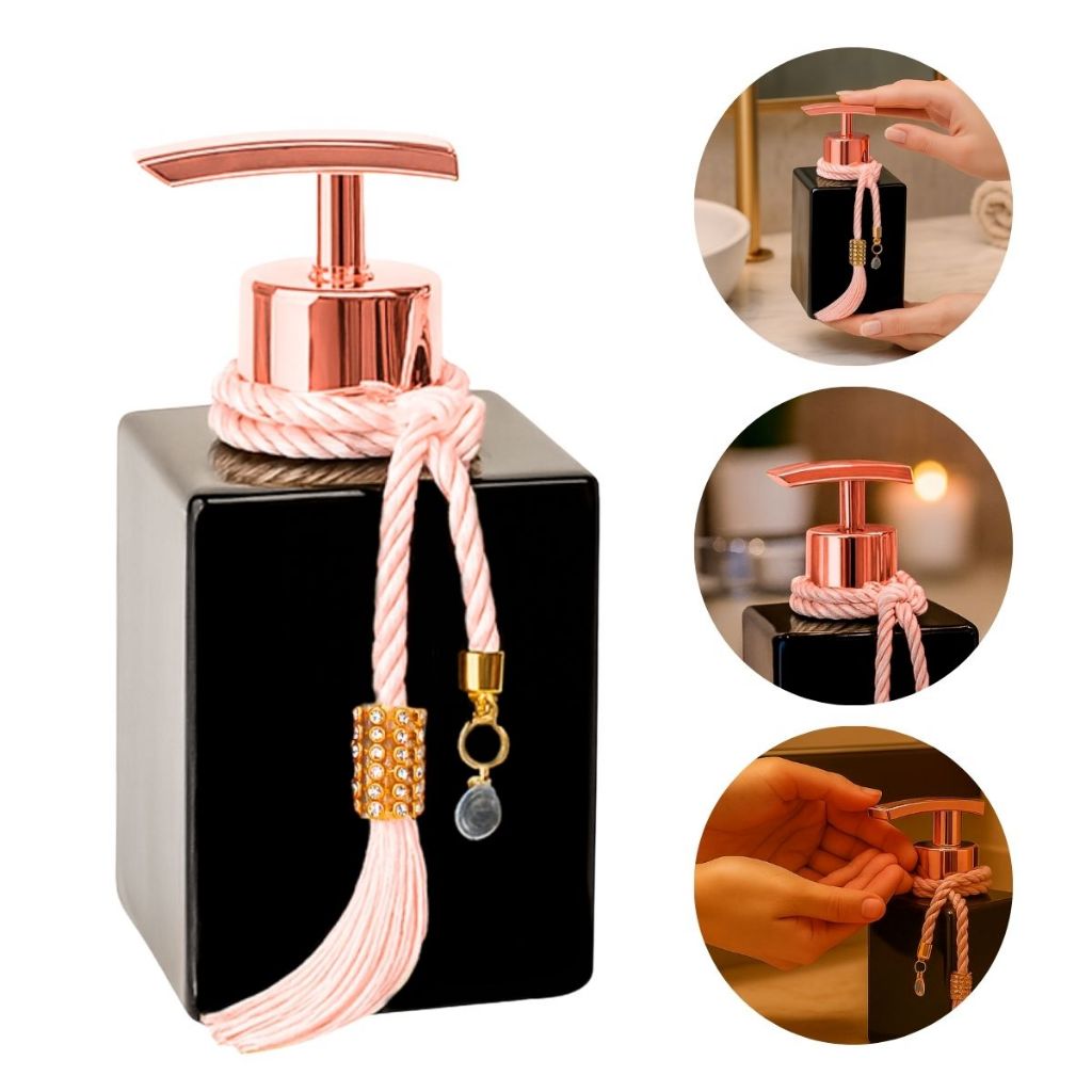 01 Frasco Vidro Cubo Preto 250ml Porta Sabonete C/ Válvula Super Luxo e Pingente