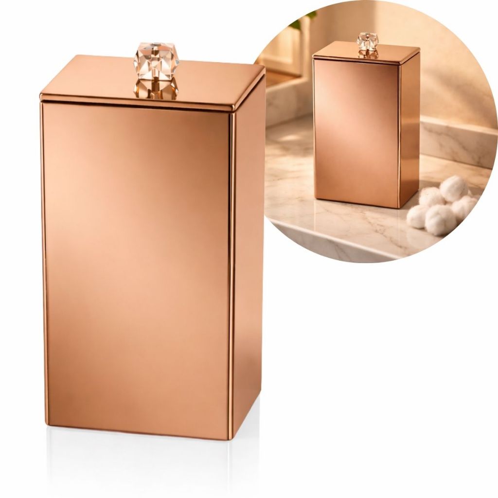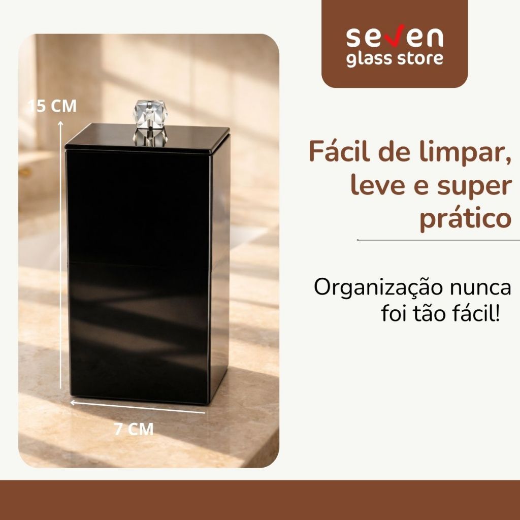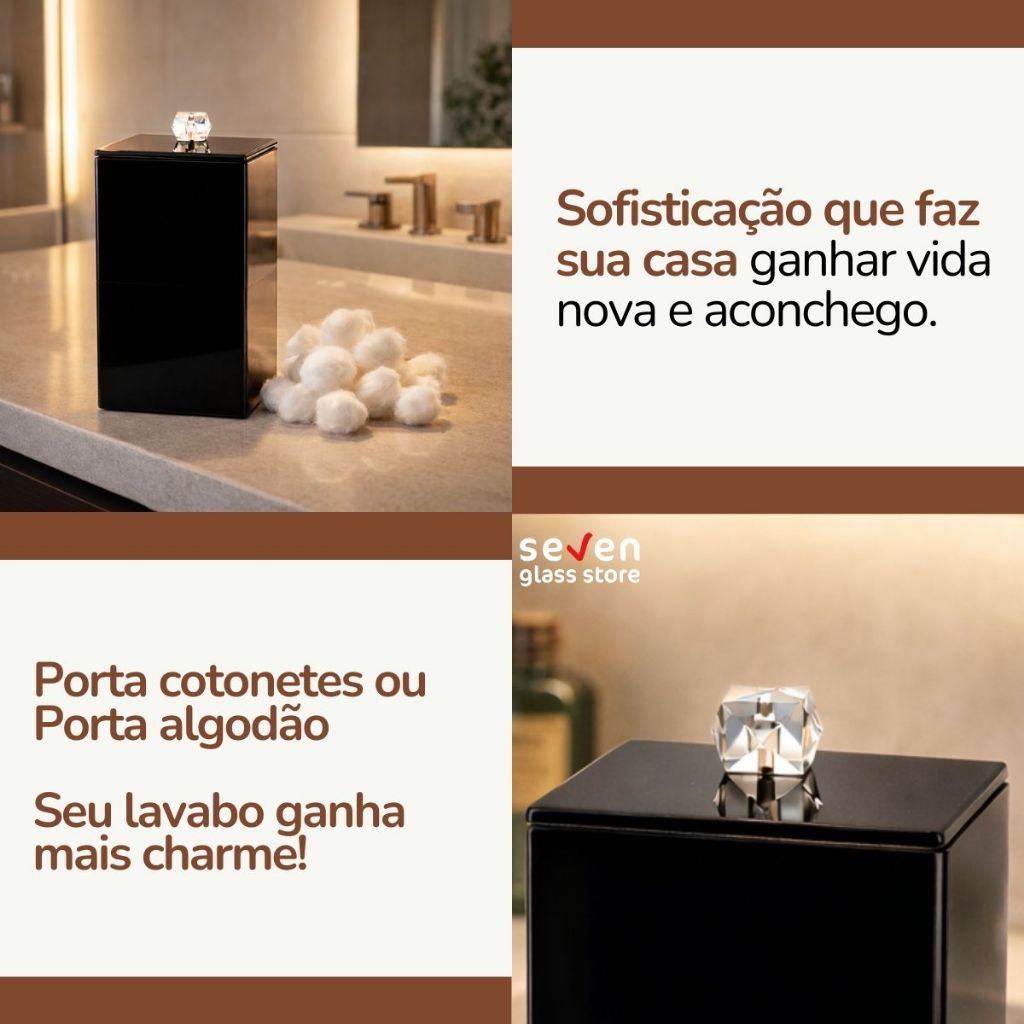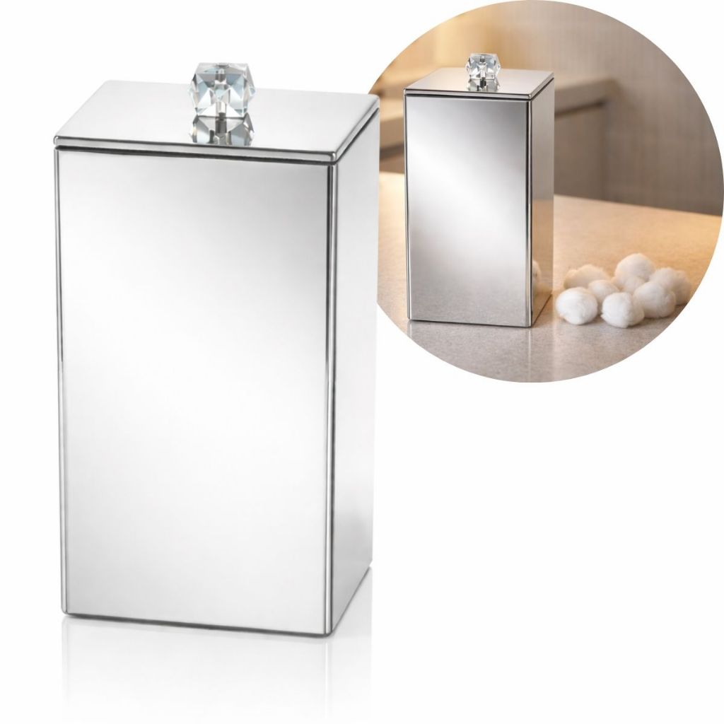Porta Cotonete de Luxo em Vidro Espelhado com Tampa e Puxador Decorativo 10x7x7cm