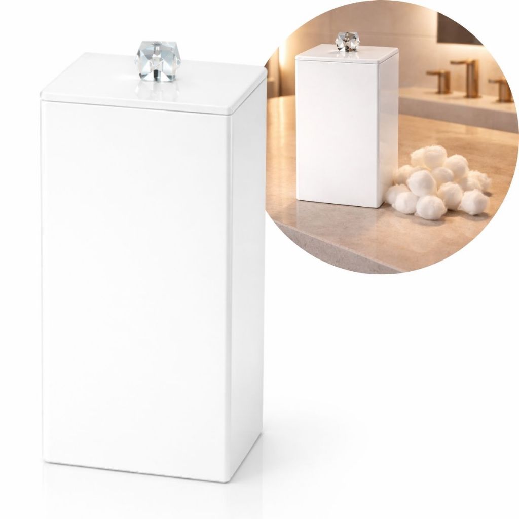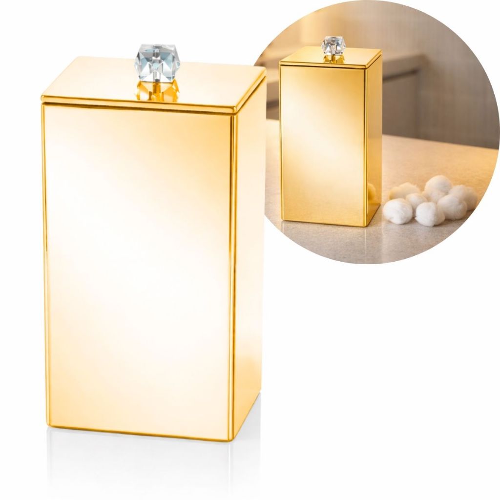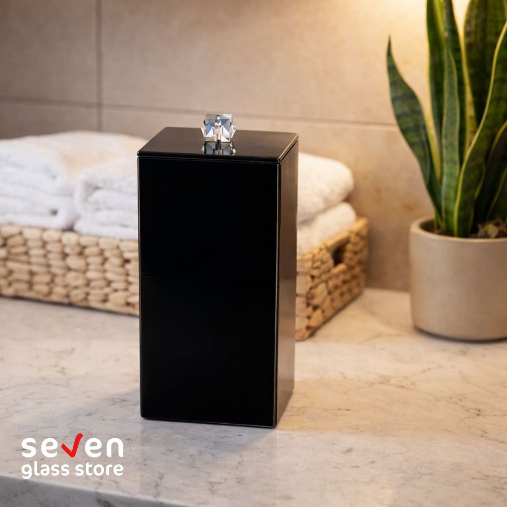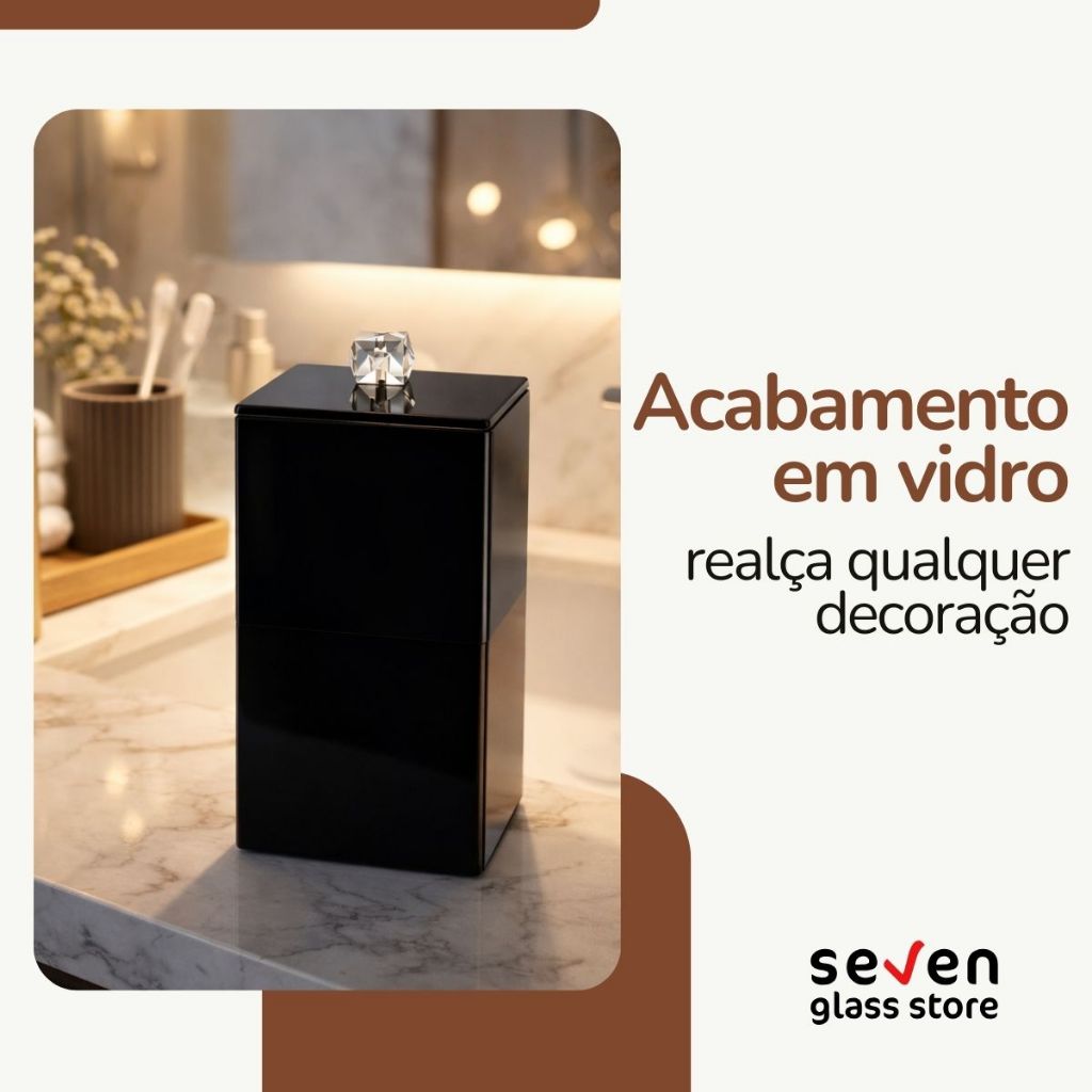 Porta Cotonete de Luxo em Vidro Espelhado com Tampa e Puxador Decorativo 10x7x7cm