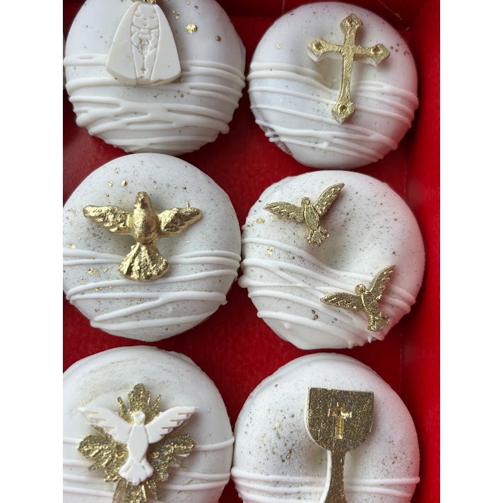 aplique batizado espirito santo nossa senhora para docinhos cake donuts pasta americana chocolate dourado e branco