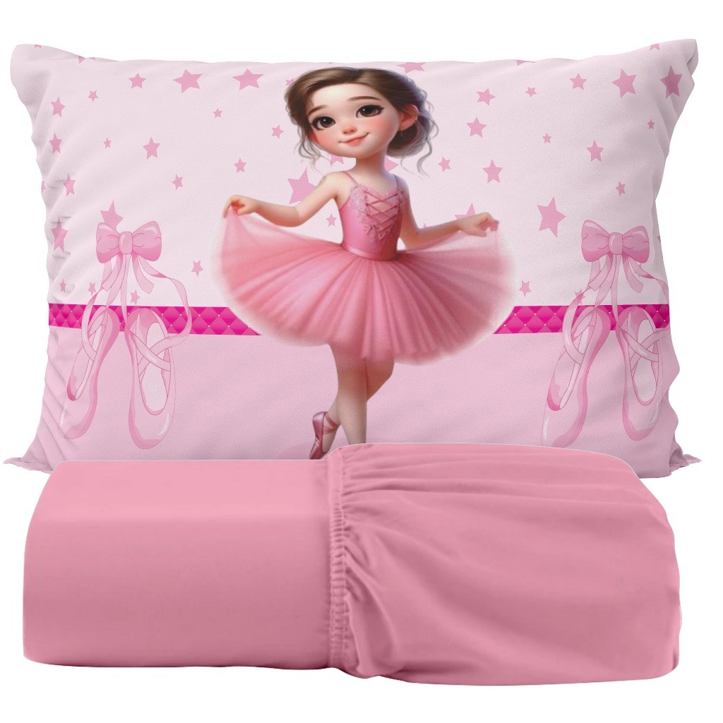 Jogo lençol e Fronha Bailarina Rosa Menina Quarto Solteiro