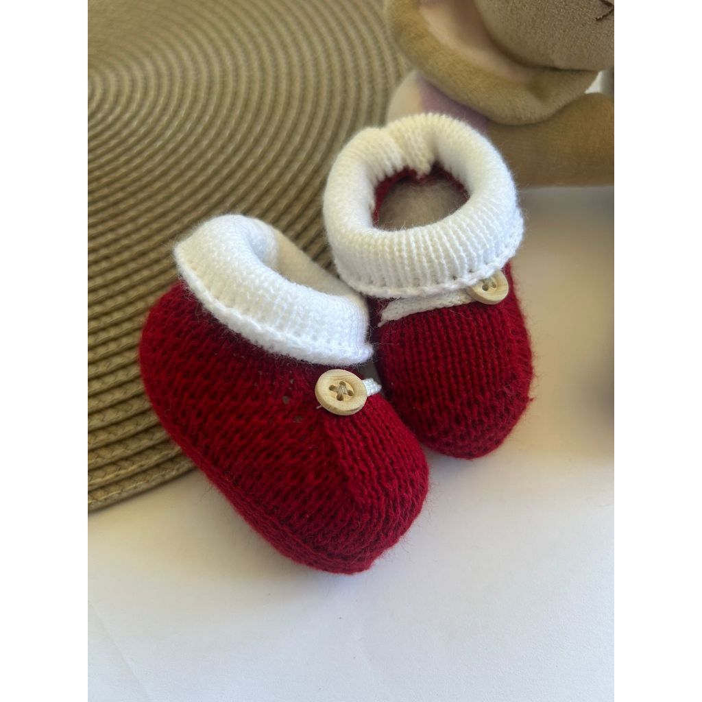 Sapatinho De Bebê Em Tricô de Linha Sapato Bebê 0-3 Meses Super Luxo Crochê Várias Cores