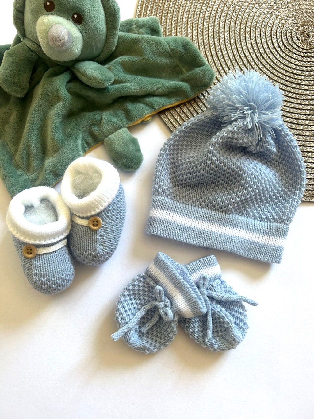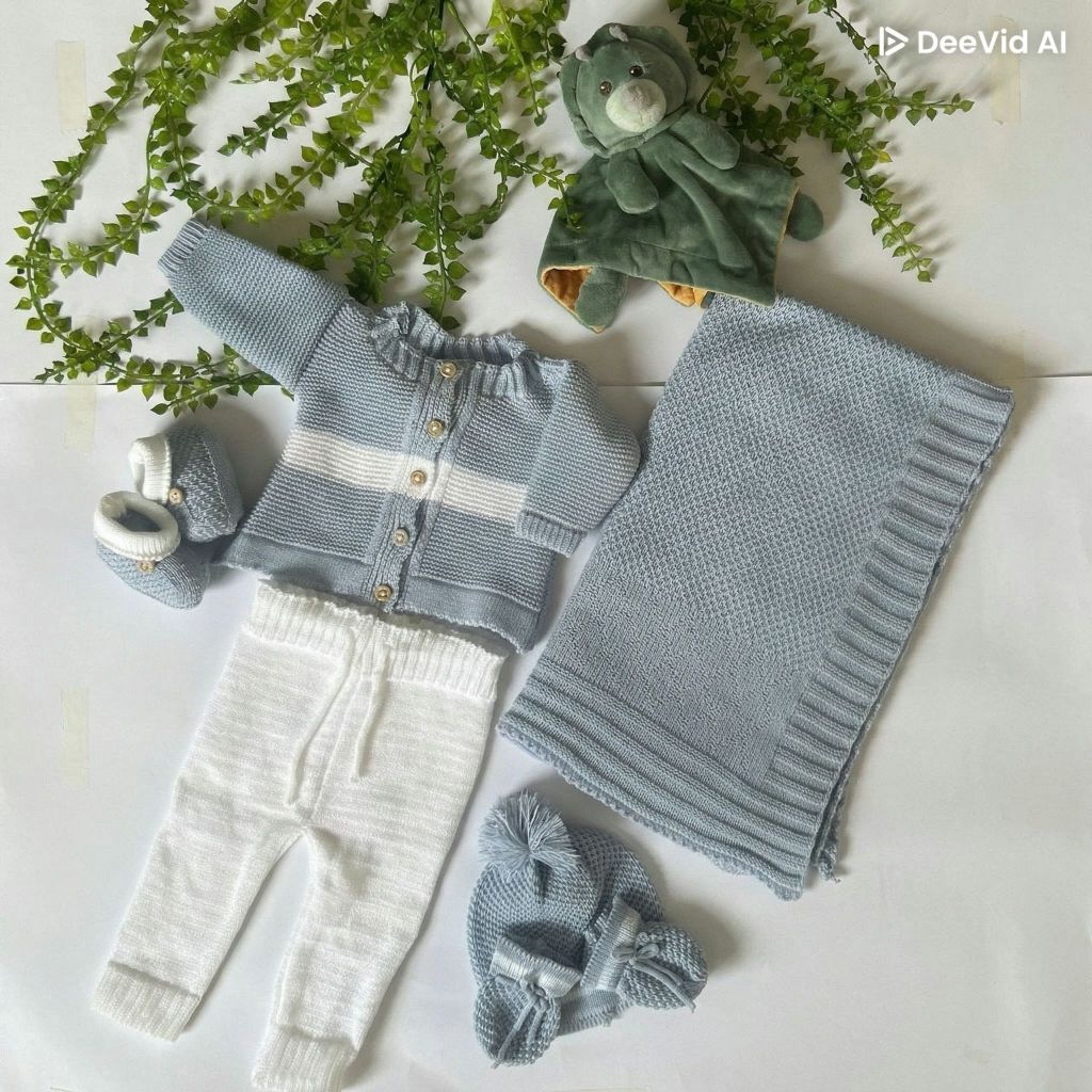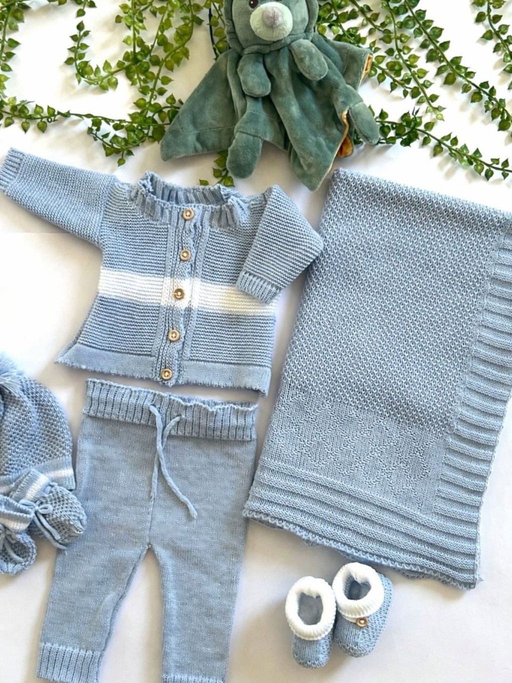Saída Maternidade para Bebê em tricô Menino Azul 6 peças