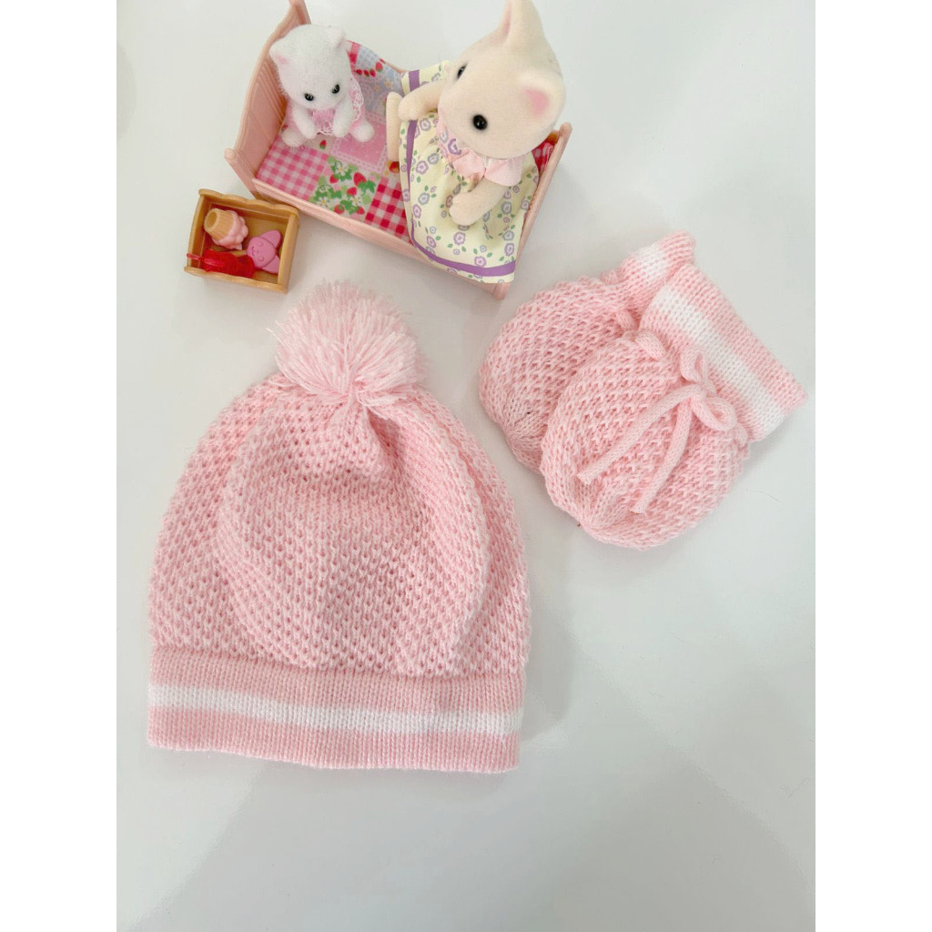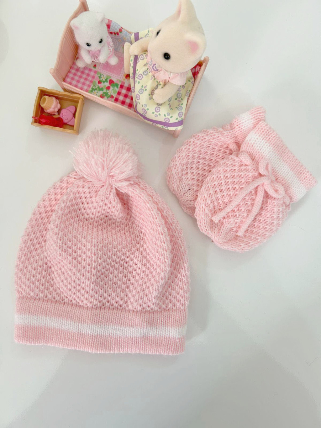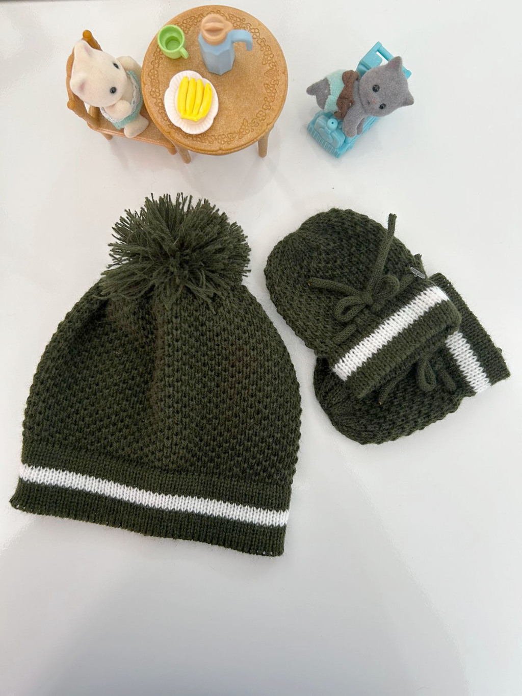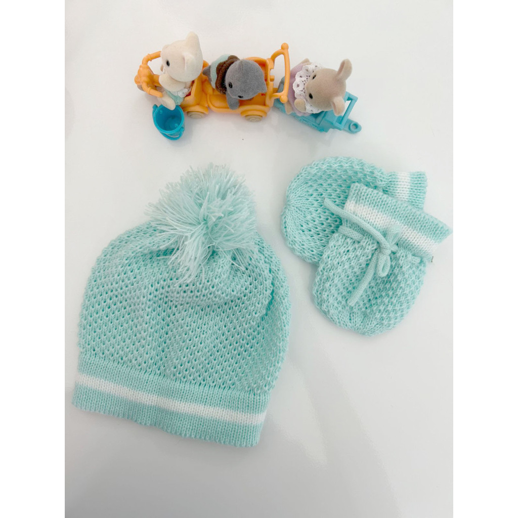 Touca e Luva em tricô para bebê 0 a 3 meses com listra