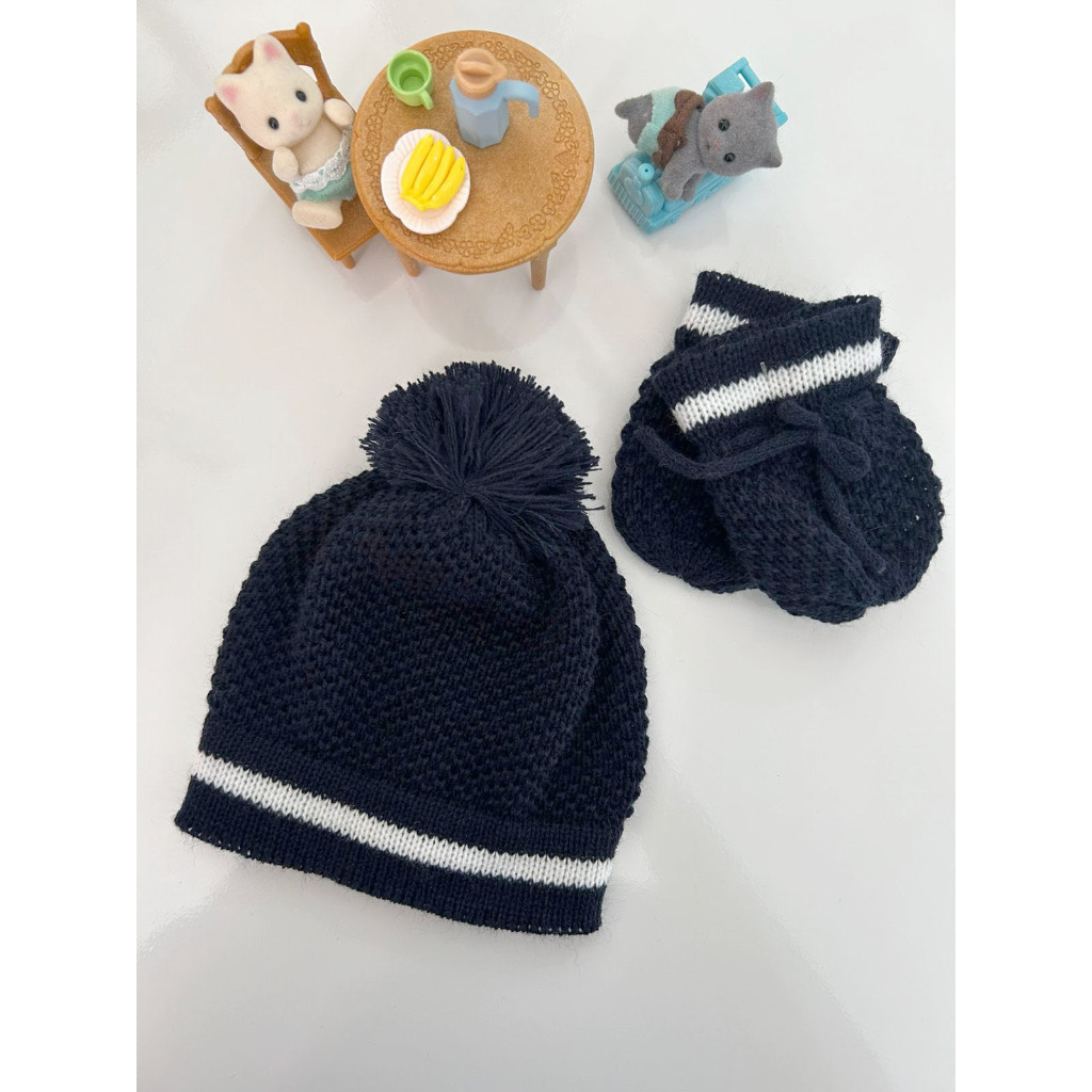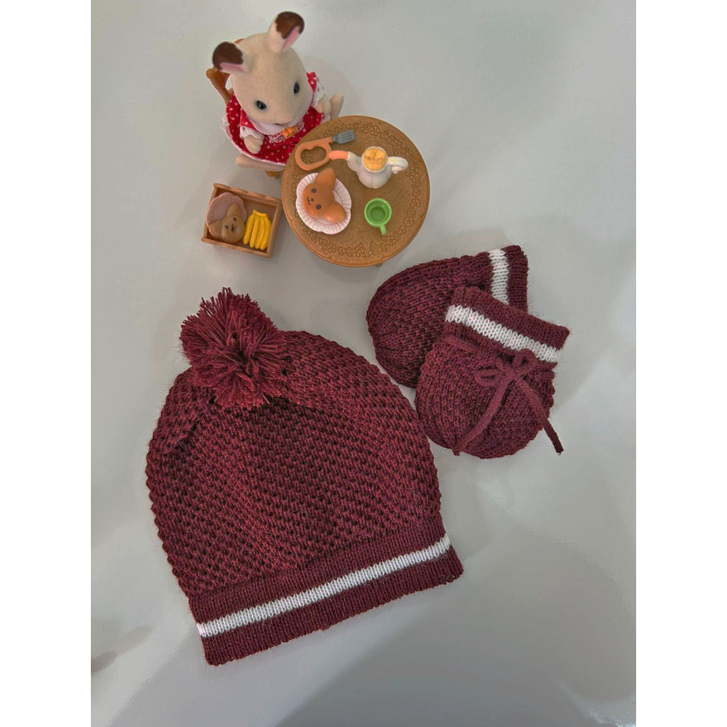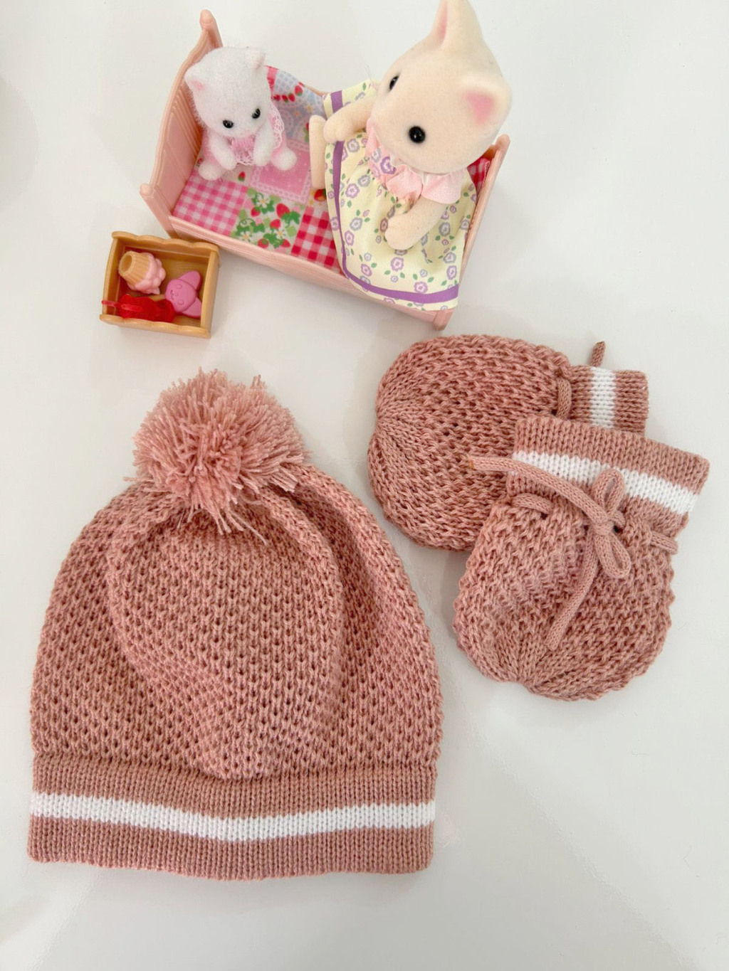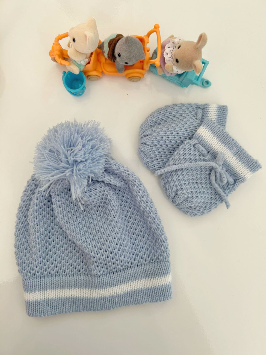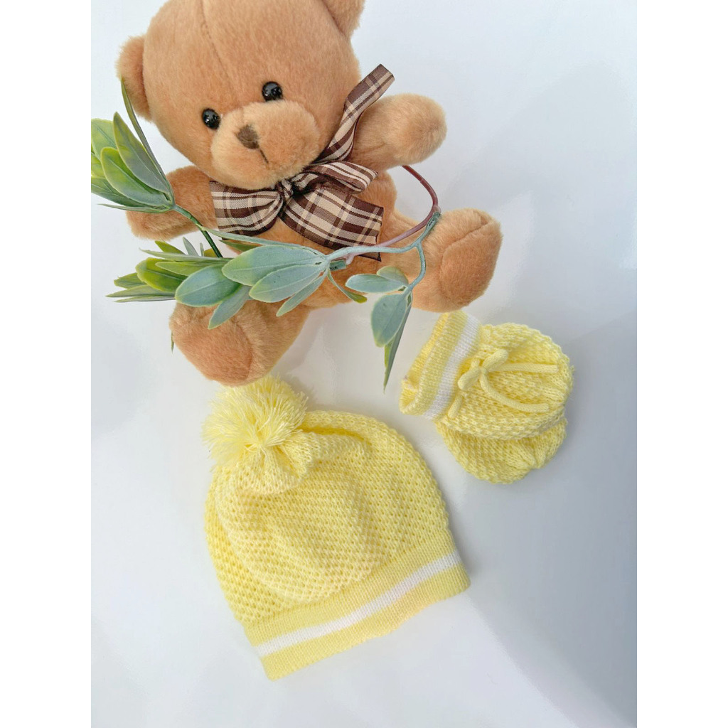 Touca e Luva em tricô para bebê 0 a 3 meses com listra