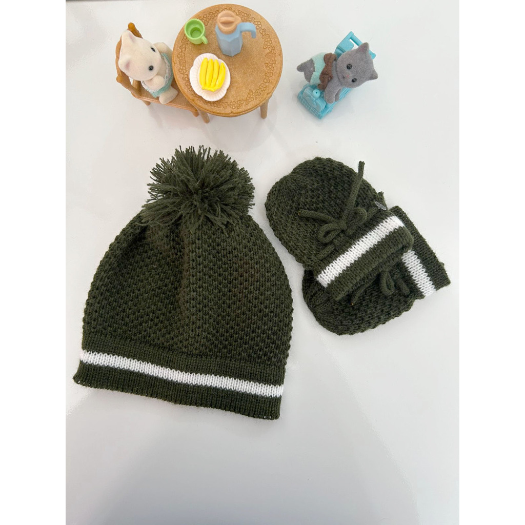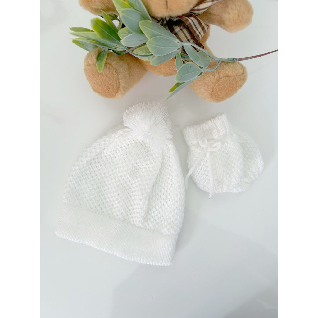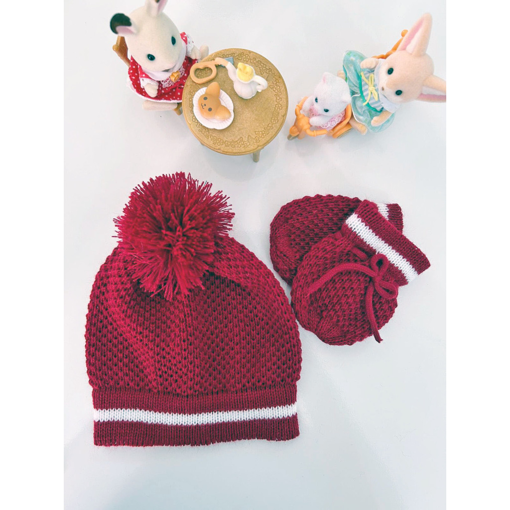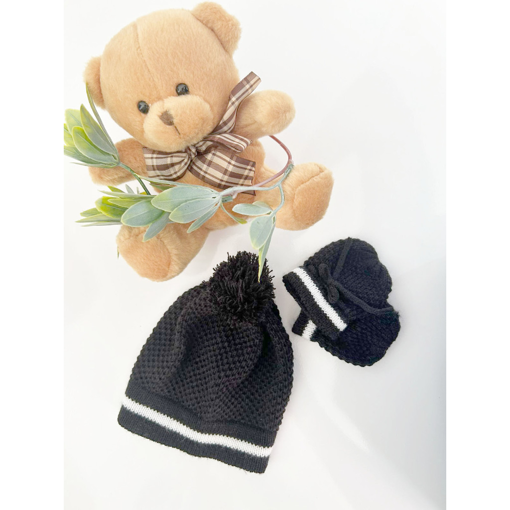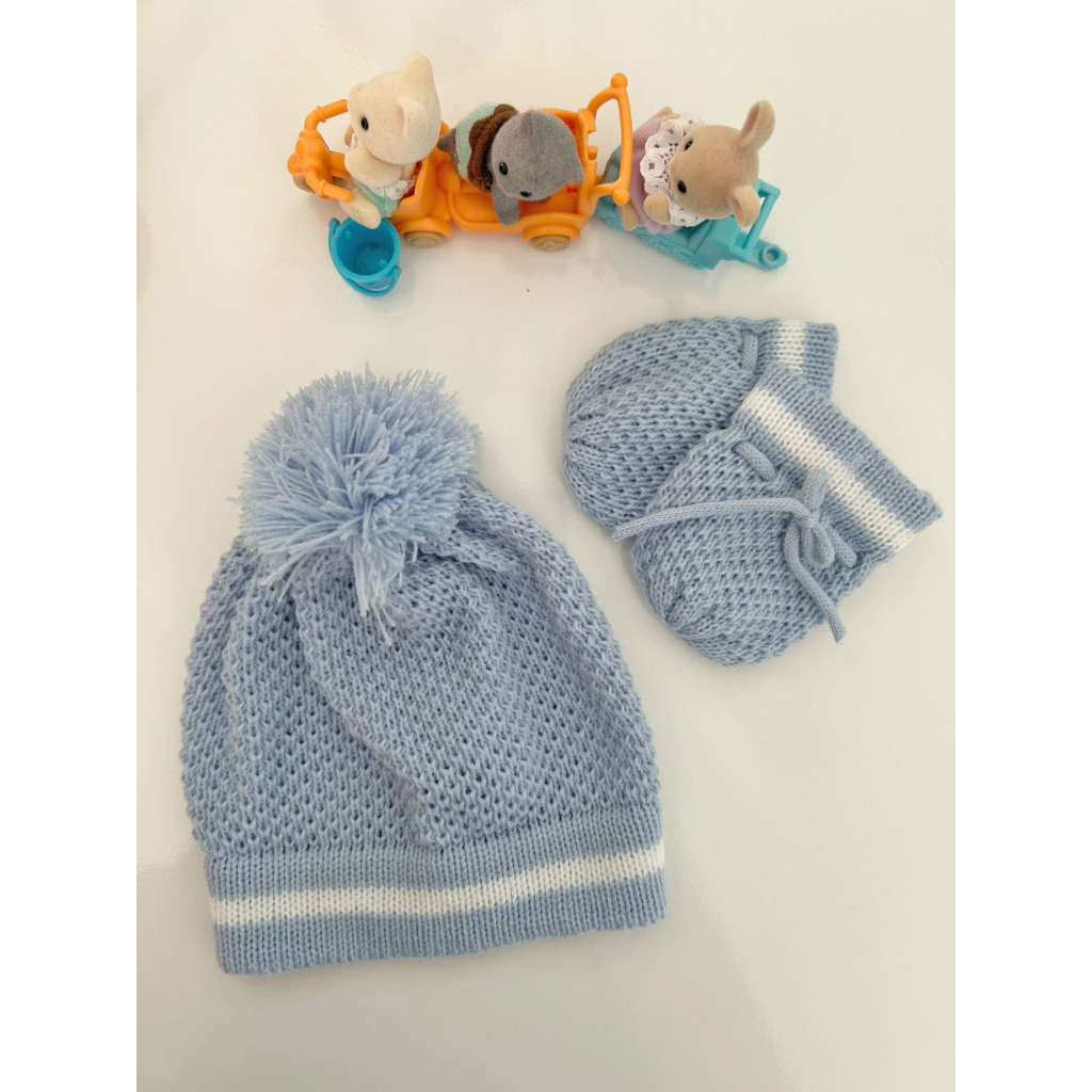 Touca e Luva em tricô para bebê 0 a 3 meses com listra